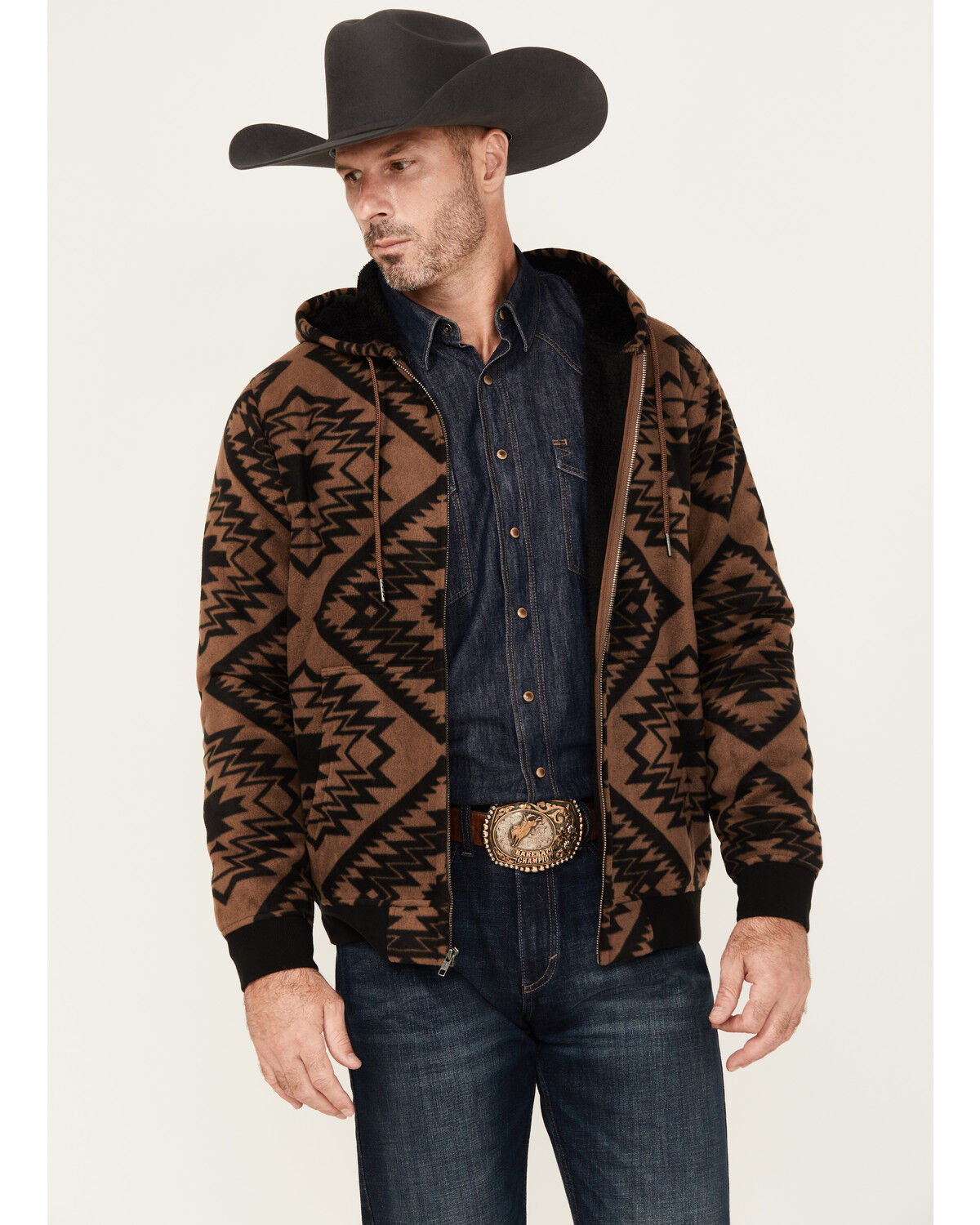 Cody James Men's Basin Southwestern Print Fleece Hooded Jacket