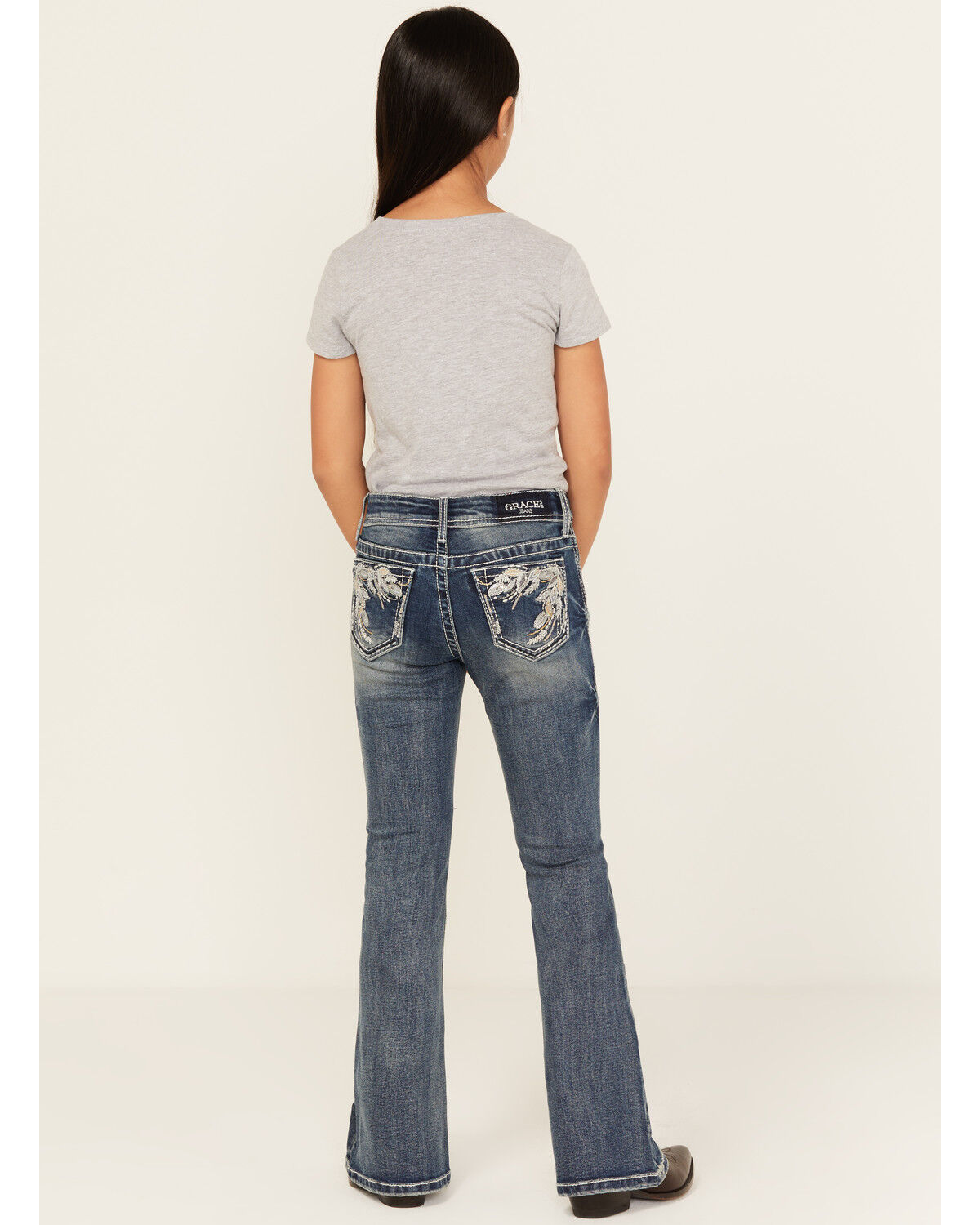 Grace In LA Girls' Leaf Embroidered Flare Stretch Denim Jeans