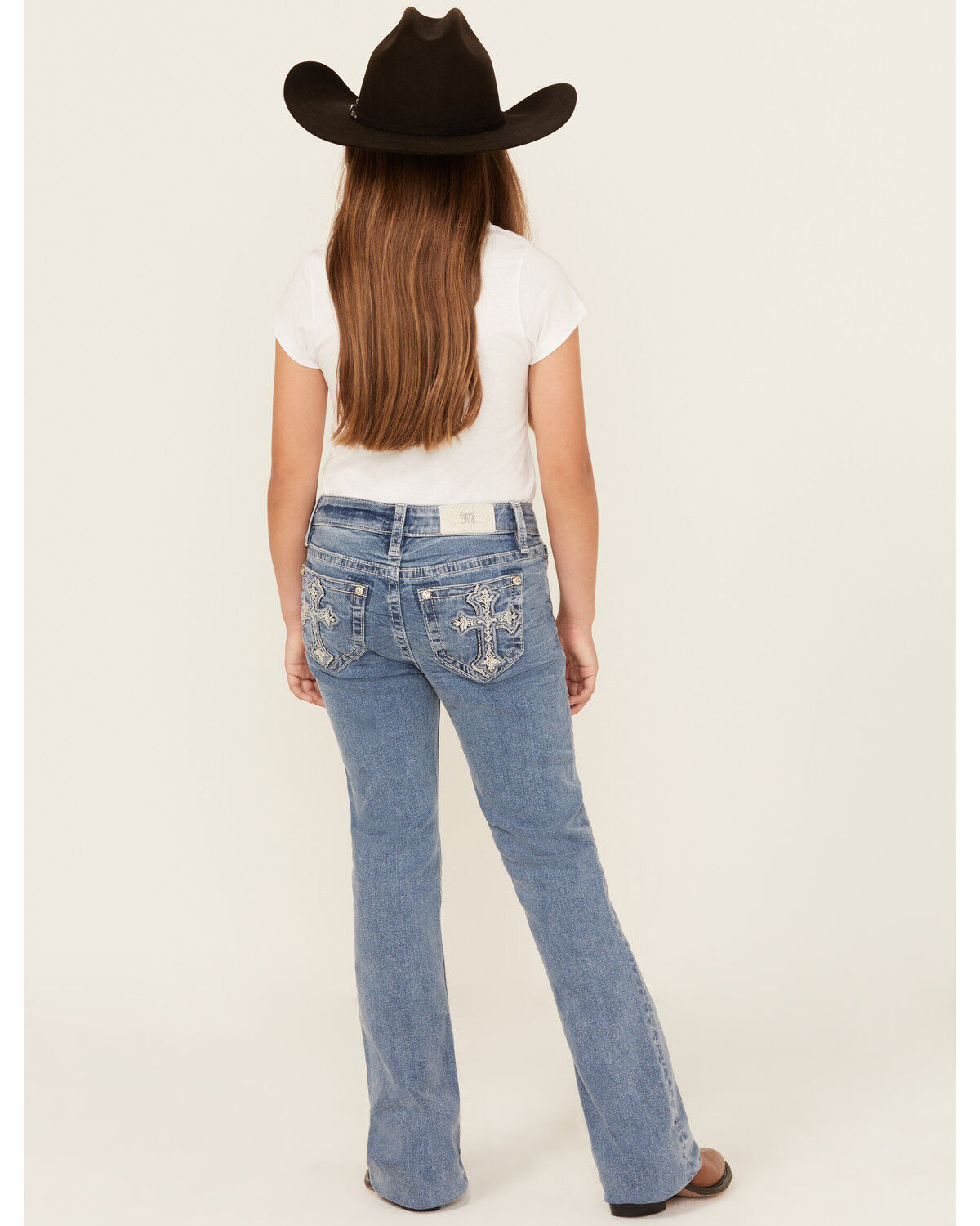 Miss Me Girls' Light Wash Cross Pocket Bootcut Denim Jeans