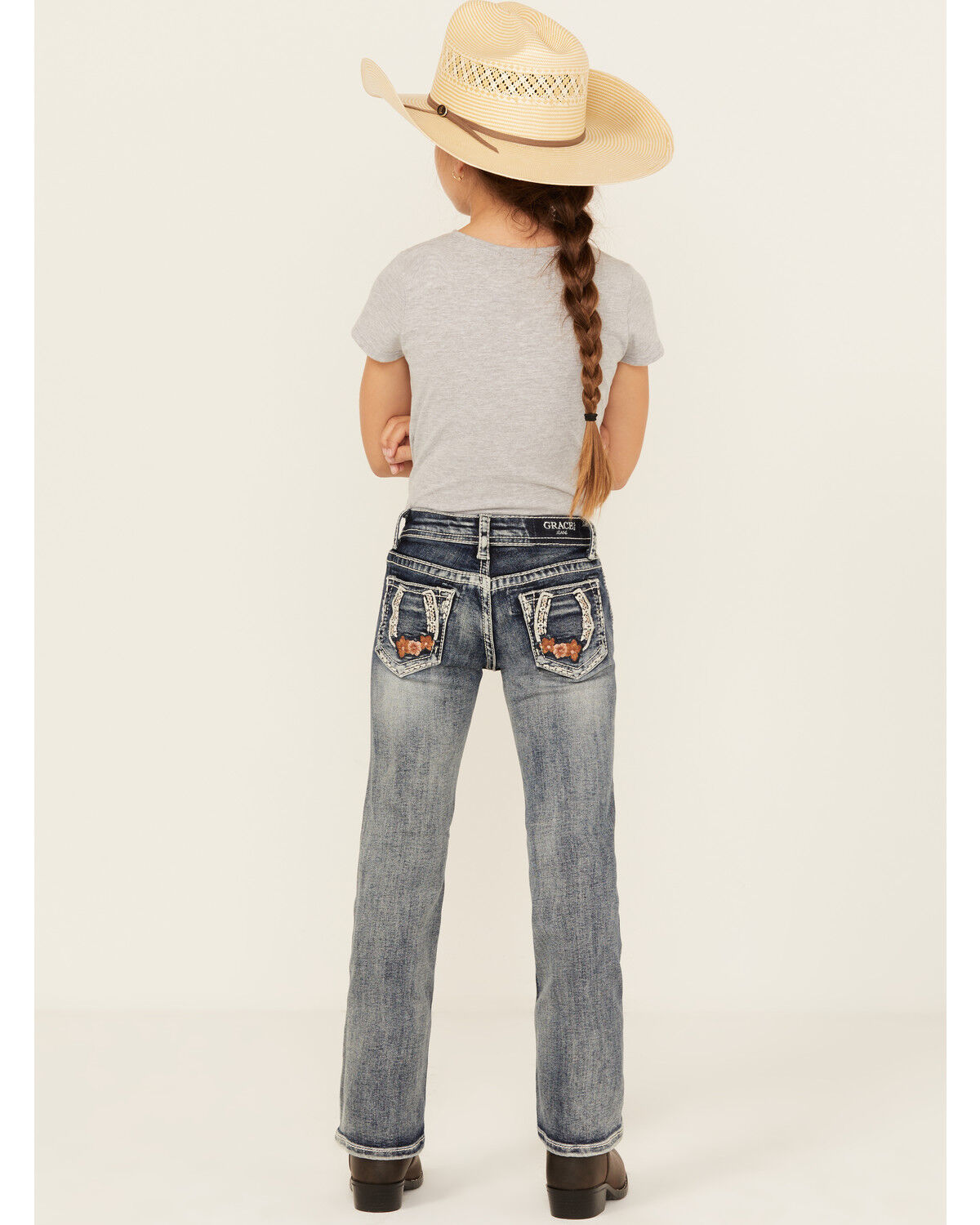 Wrangler Girls' Light Wash Embroidered Pocket Bootcut Jeans