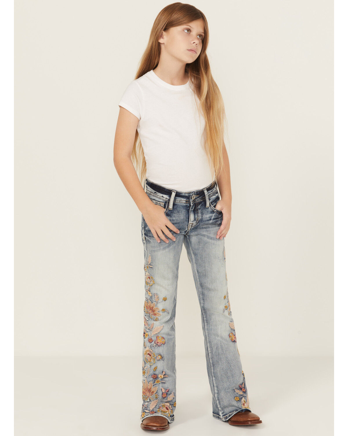 Wrangler Girls' Medium Wash Trouser Leg Jeans