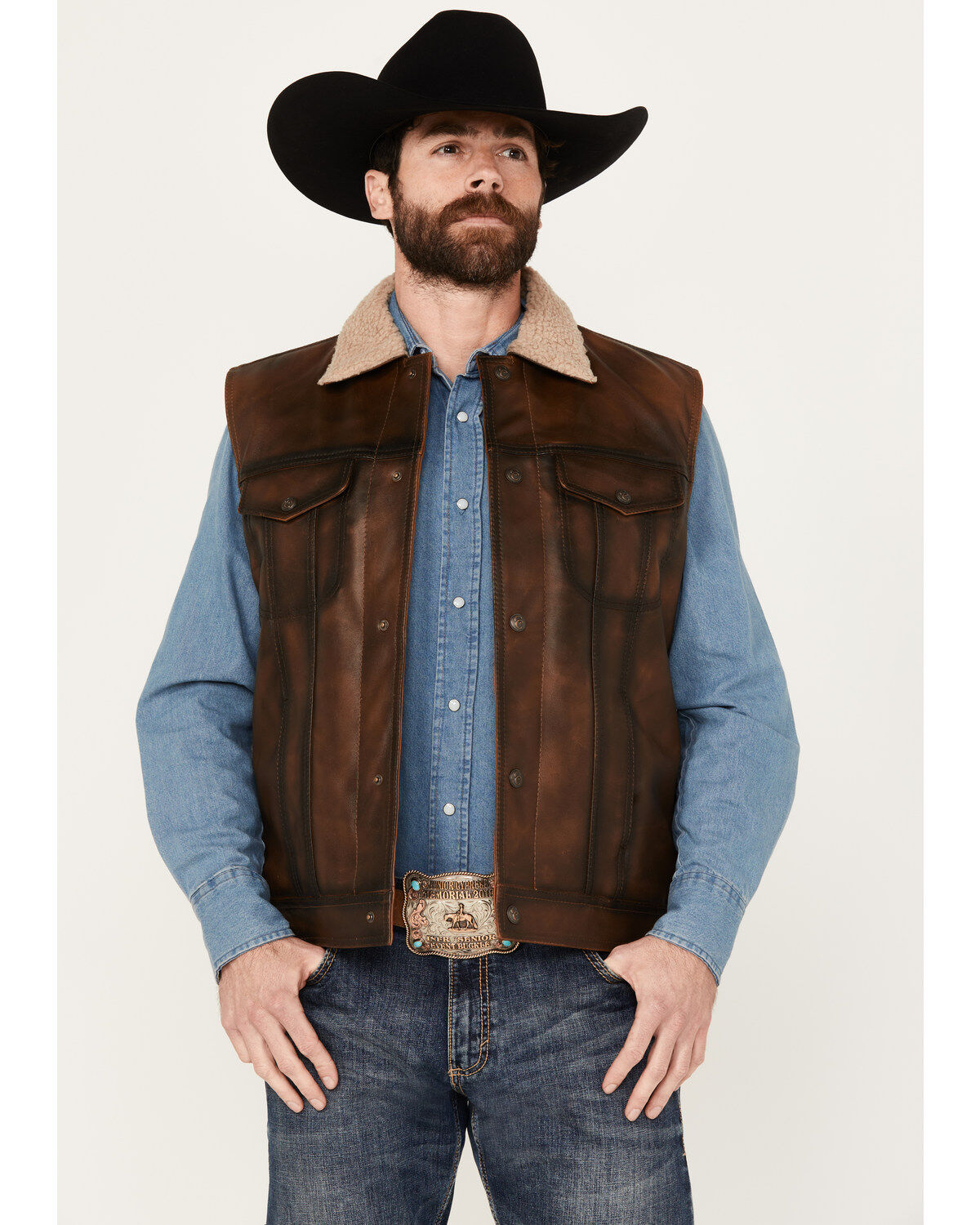 Cripple Creek Men's Sherpa Lined Leather Vest