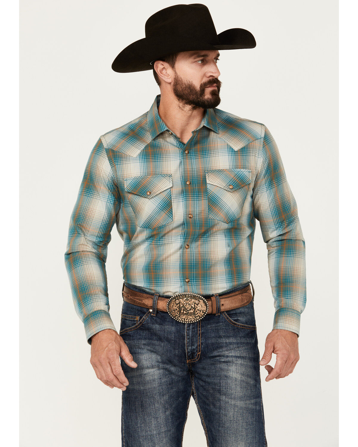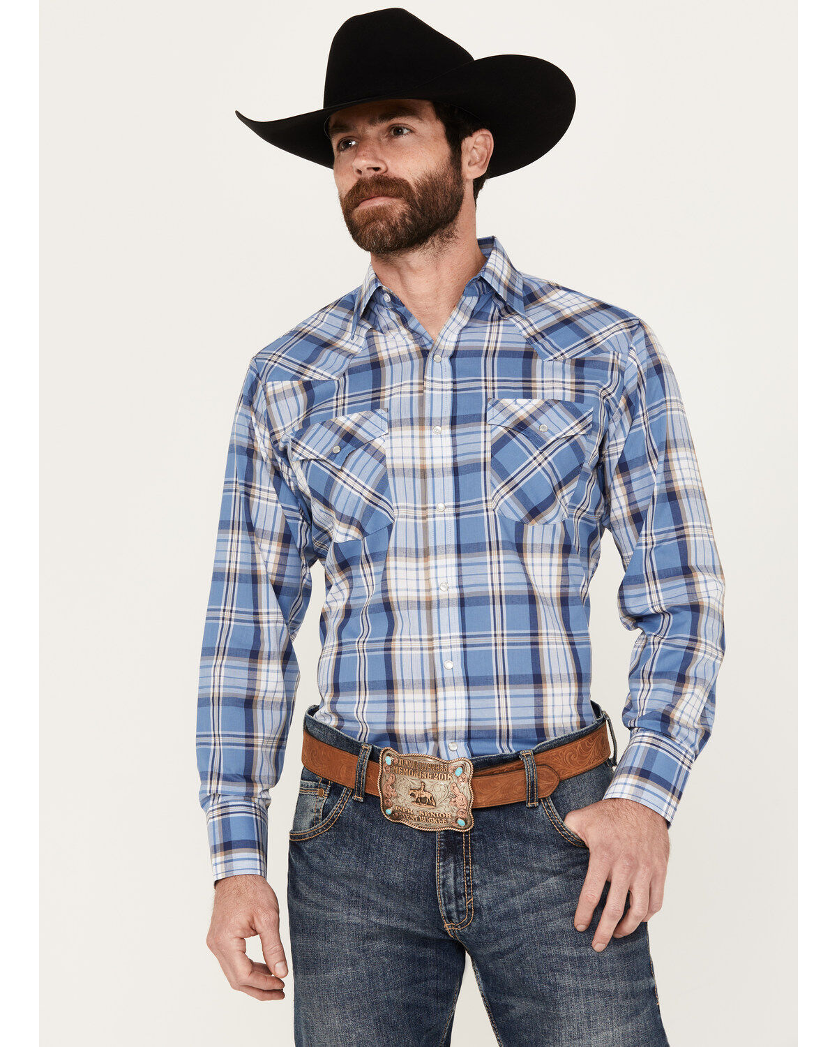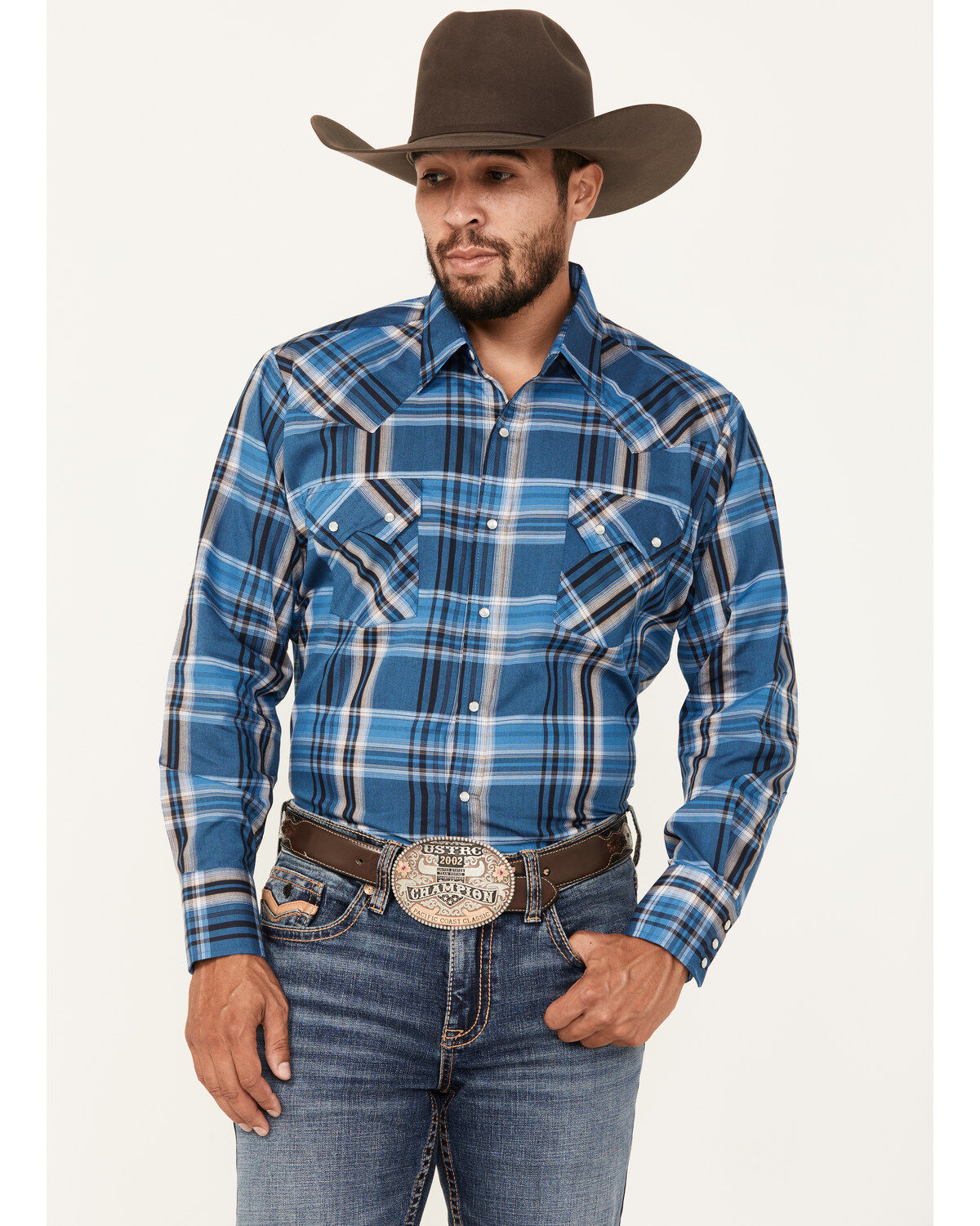 Ely Walker Men's Plaid Print Long Sleeve Snap Western Shirt