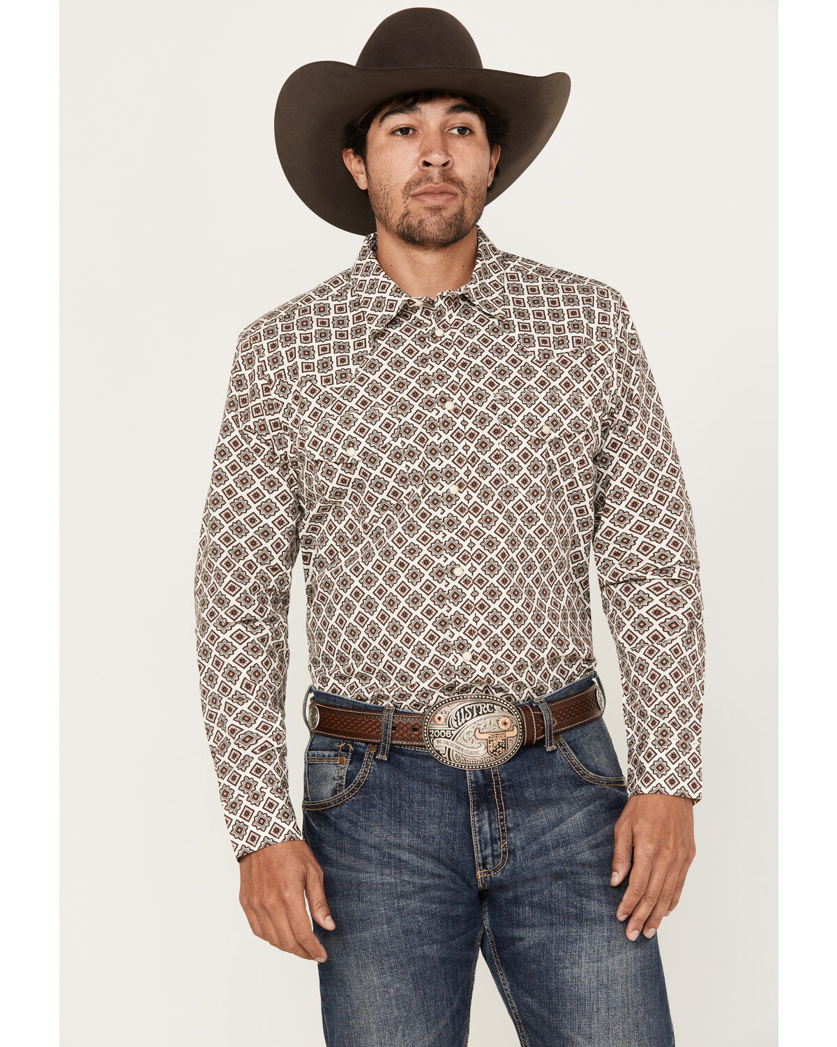 RANK 45® Men's Bulldogger Dobby Geo Button-Down Western Shirt
