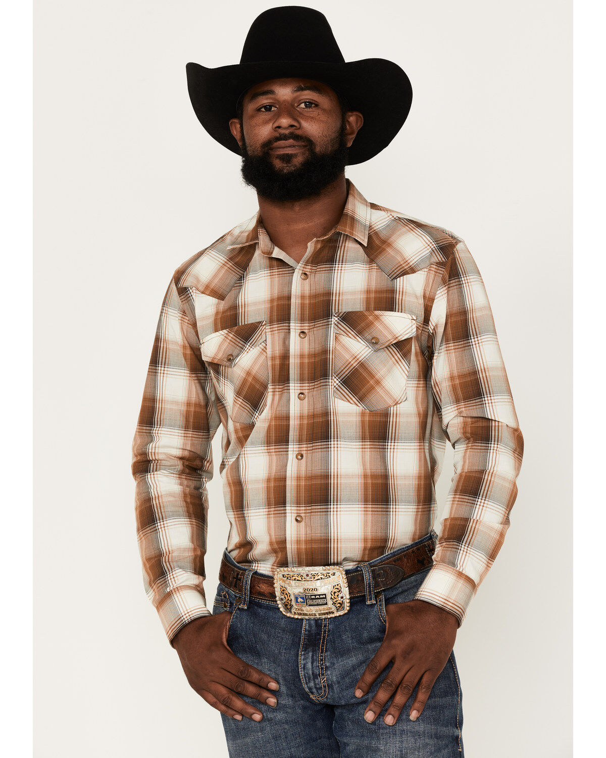 Wrangler Men's Plaid Print Long Sleeve Snap Western Shirt