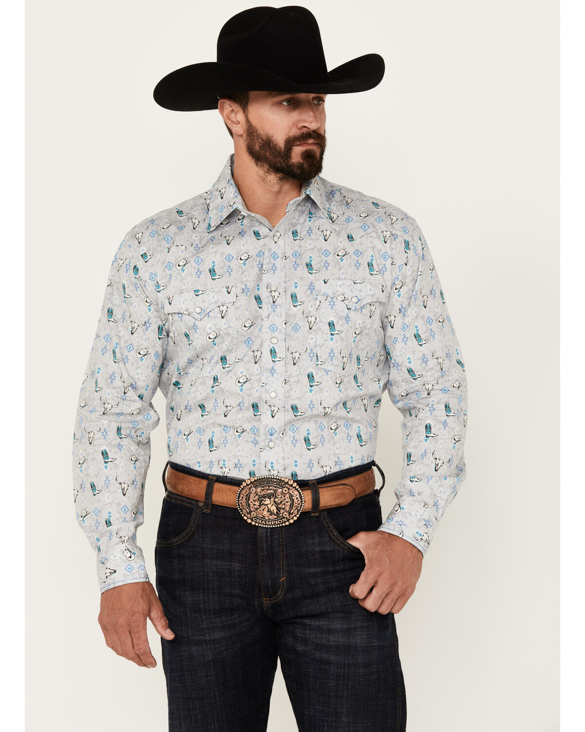 Stetson Men's Geo Print Long Sleeve Button-Down Western Shirt