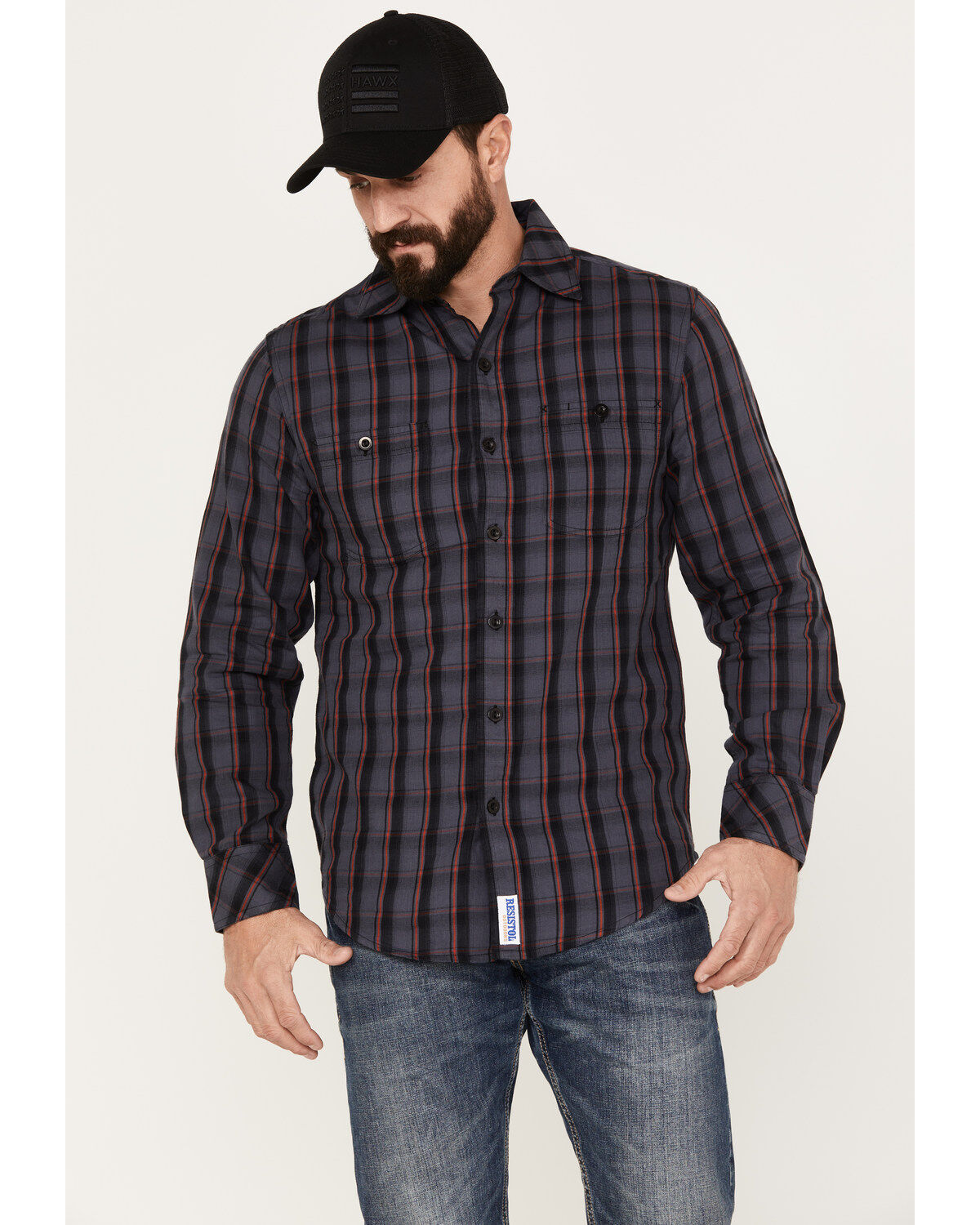 Resistol Men's Reid Plaid Print Long Sleeve Snap Western Shirt