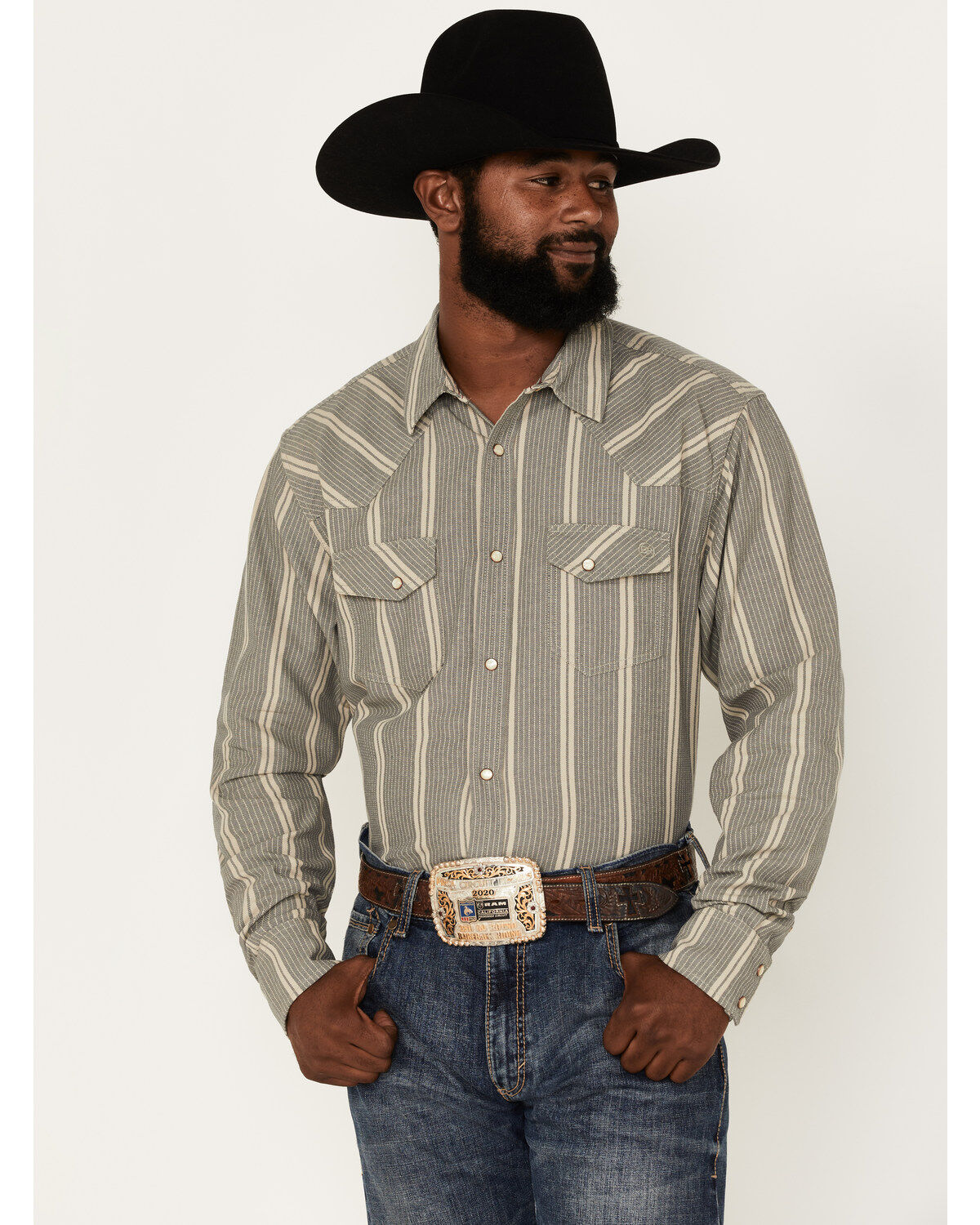 Blue Ranchwear Men's Striped Long Sleeve Pearl Snap Shirt
