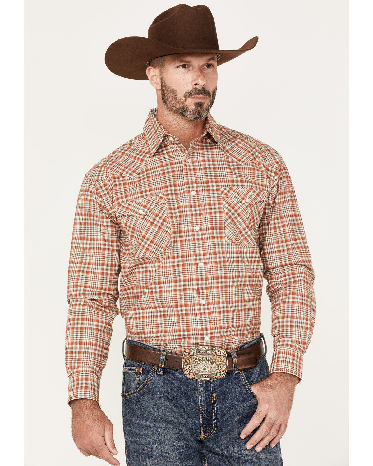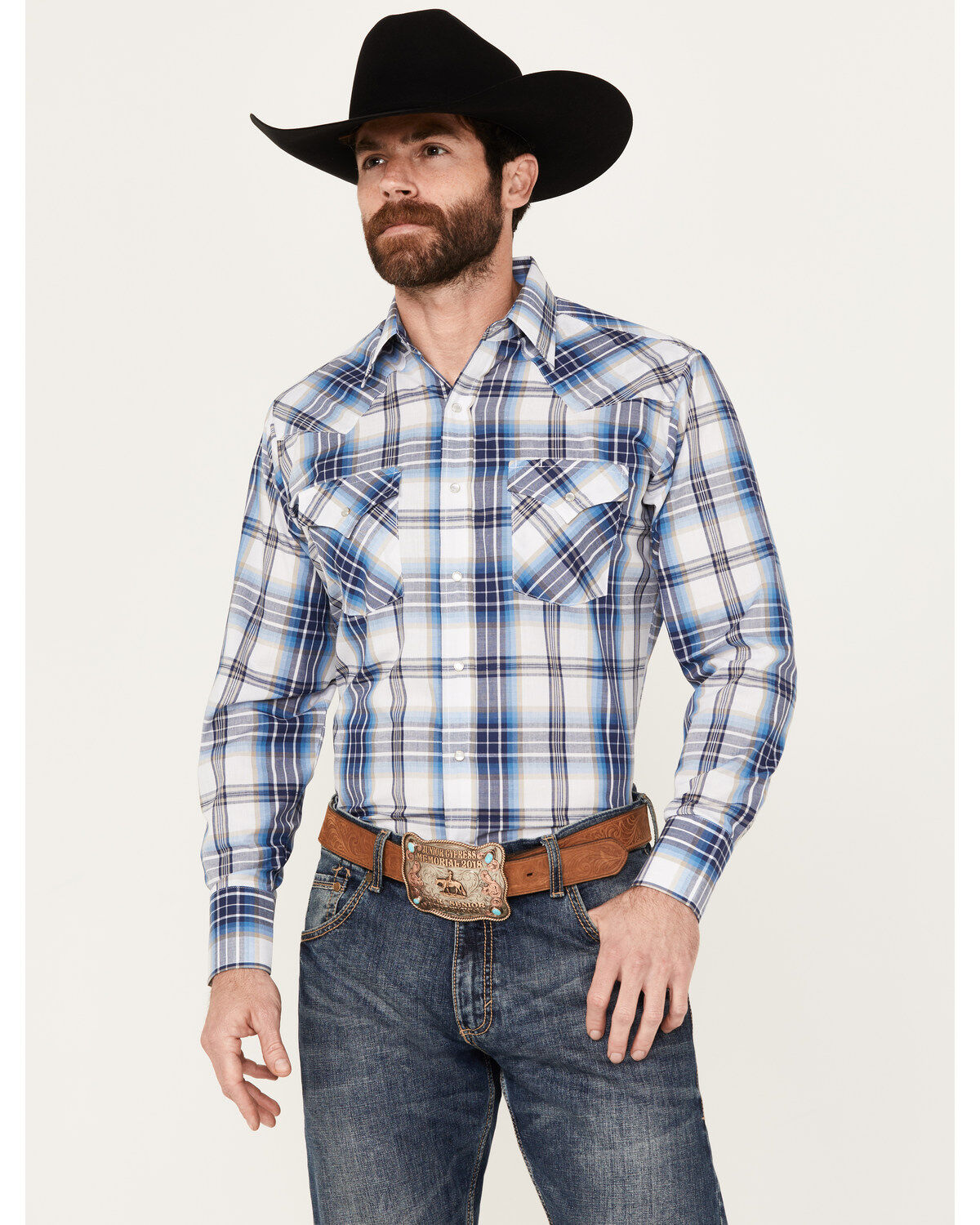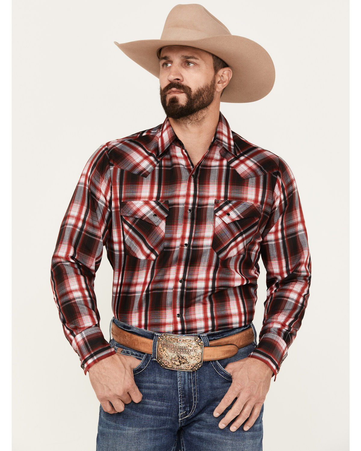 Ely Walker Men's Plaid Print Long Sleeve Snap Western Shirt