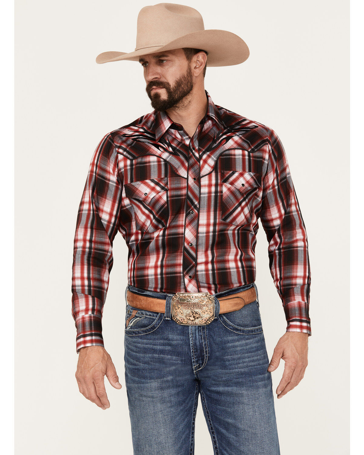 Ely Walker Men's Plaid Print Long Sleeve Snap Western Shirt