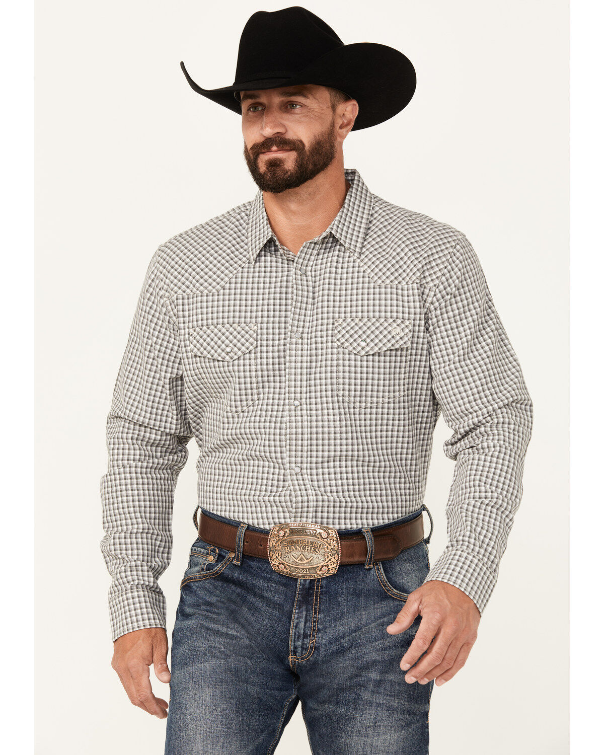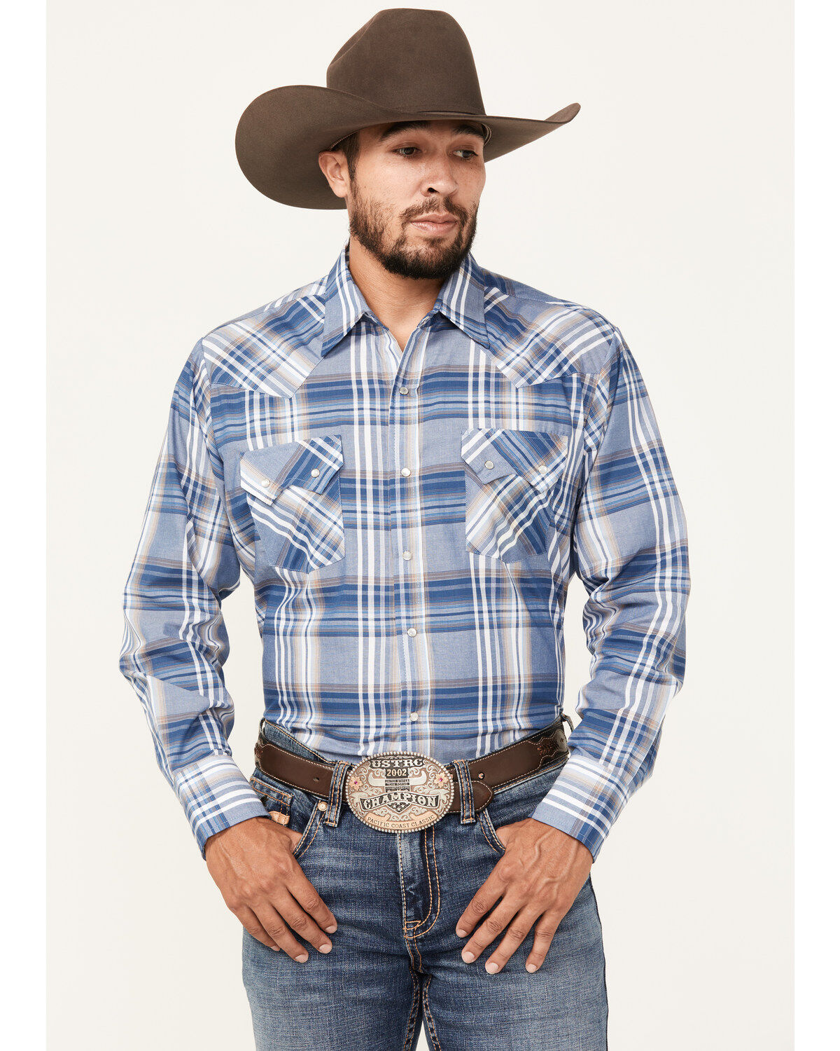 Ely Walker Men's Plaid Print Long Sleeve Snap Western Shirt