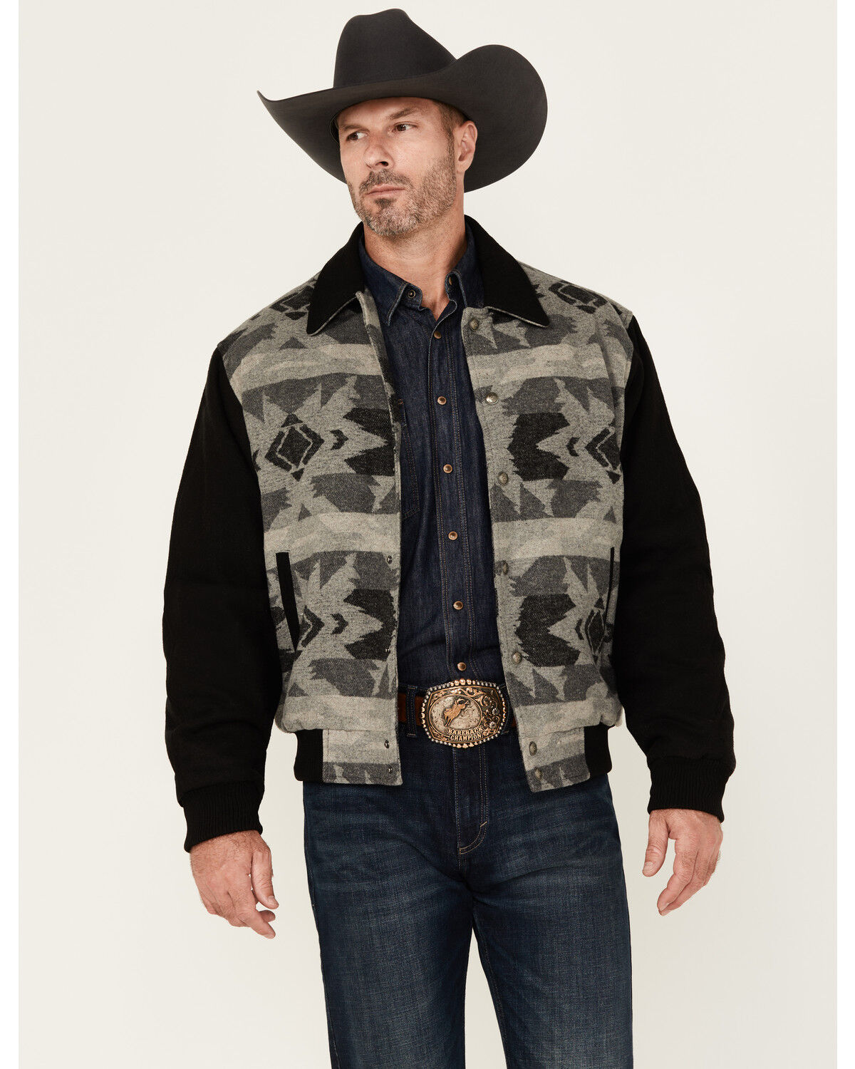 Cripple Creek Men's Southwestern Print Wool Bomber Jacket