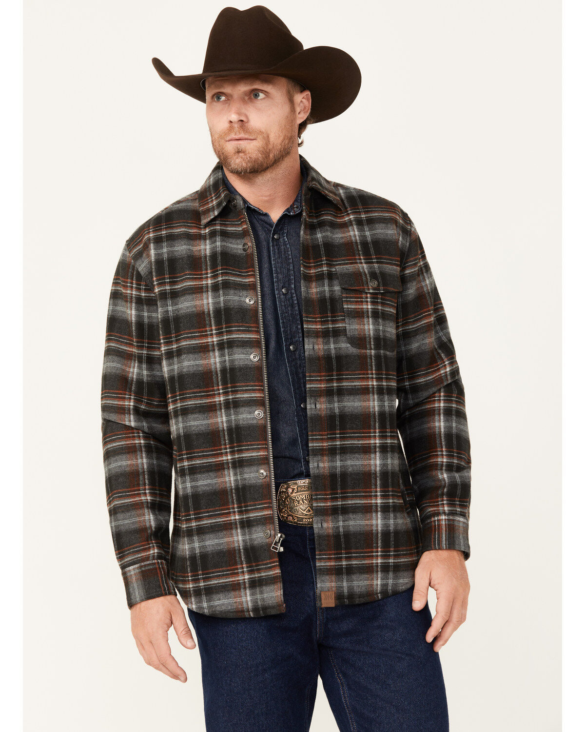 Dakota Grizzly Men's Wade Plaid Print Button-Down Zip Flannel Jacket