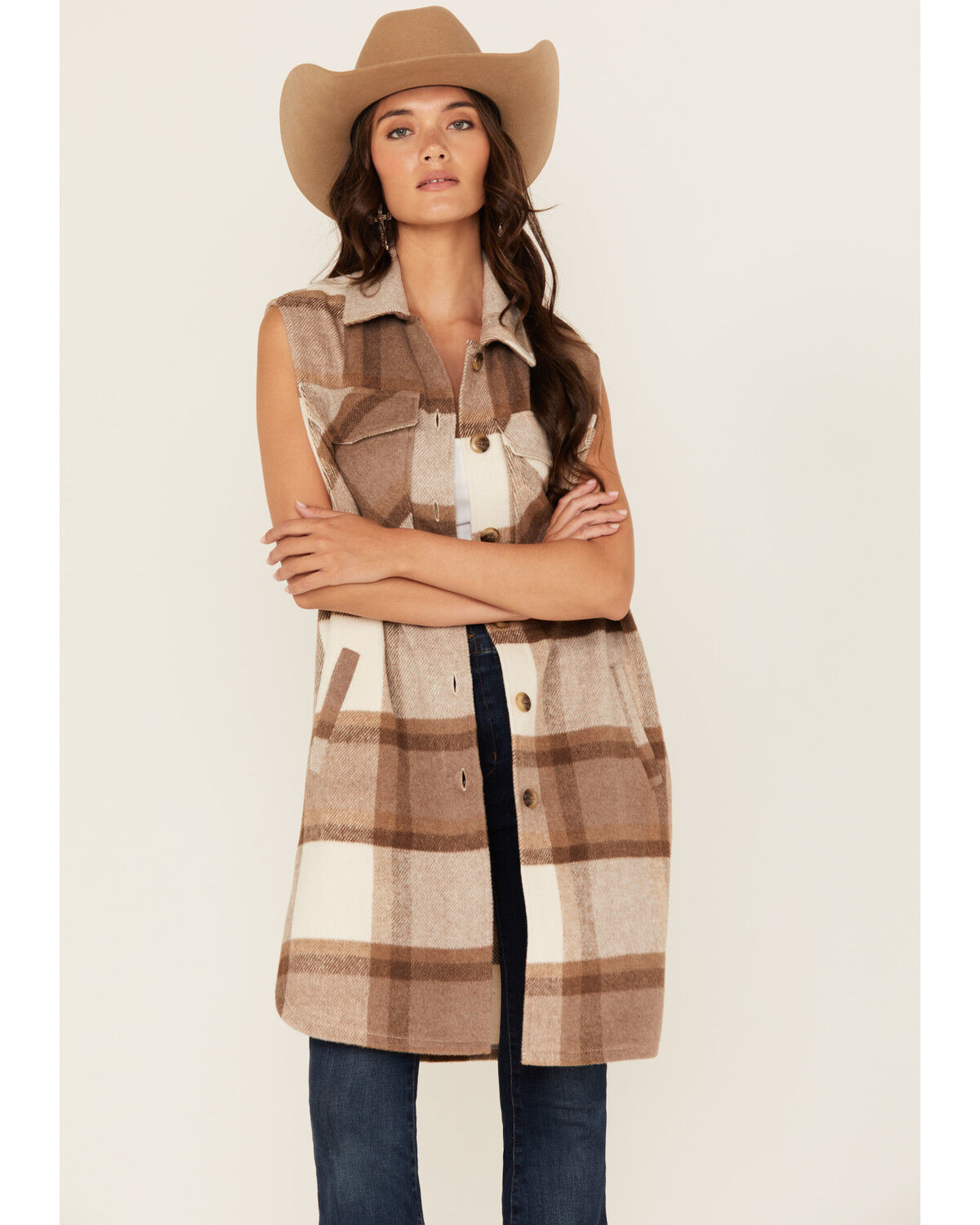 26 International Women's Plaid Print Long Vest