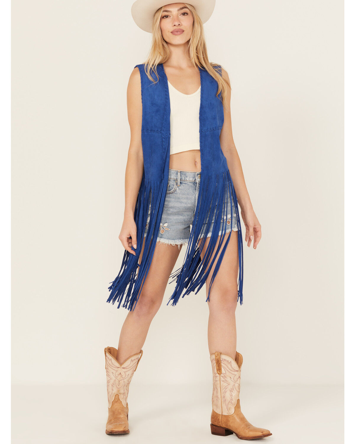 Saints & Hearts Women's Faux Suede Star Tiered Fringe Vest