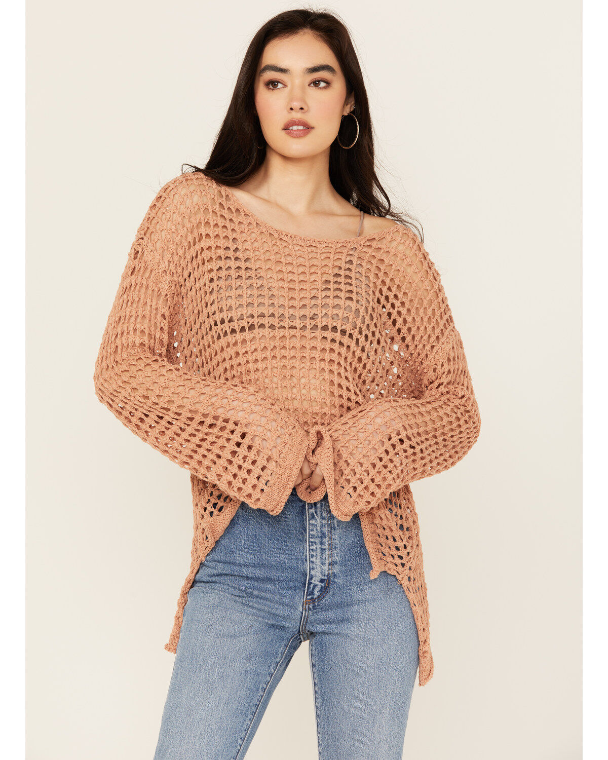 People of Leisure Women's Open Crochet Long Sleeve Sweater