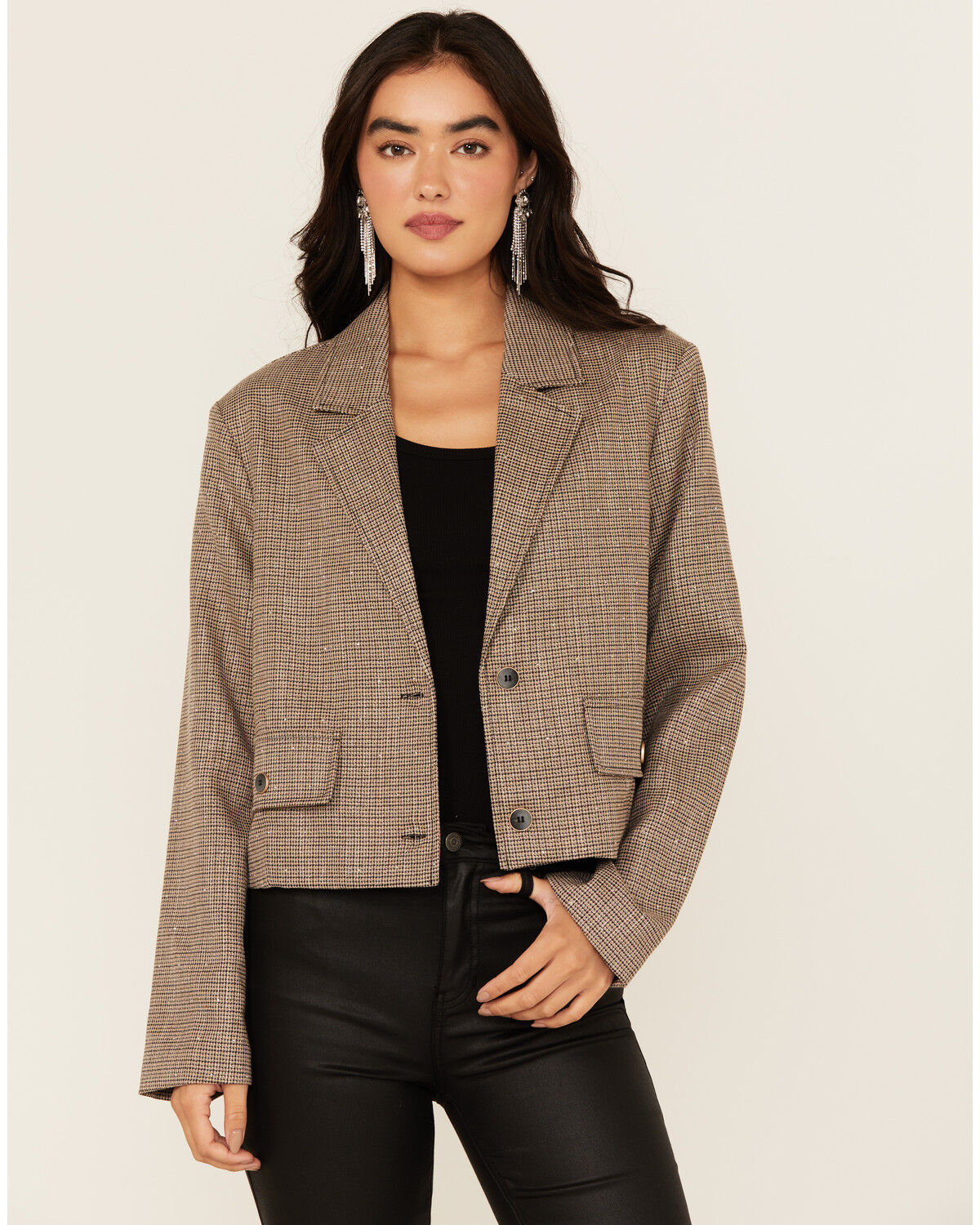 Mystree Women's Plaid Print Rhinestone Cropped Blazer