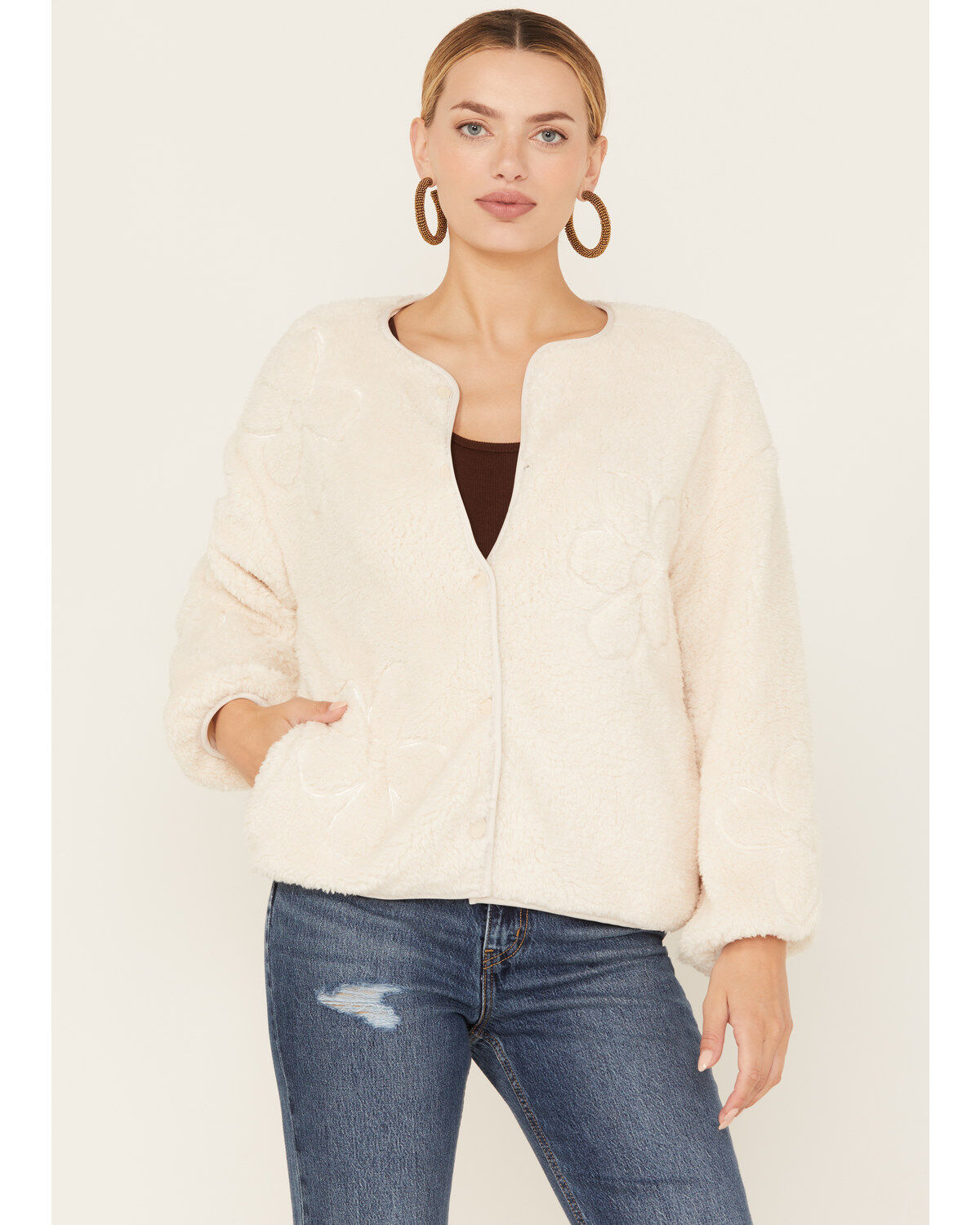Sadie & Sage Women's Anna Flower Teddy Jacket Sweater
