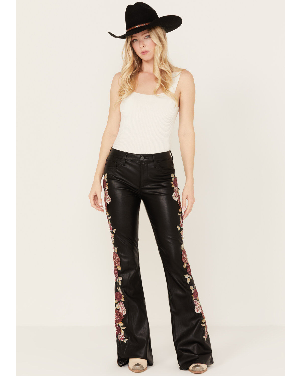 Driftwood Women's High Rise Vegan Leather Fallen Roses Flare Pants