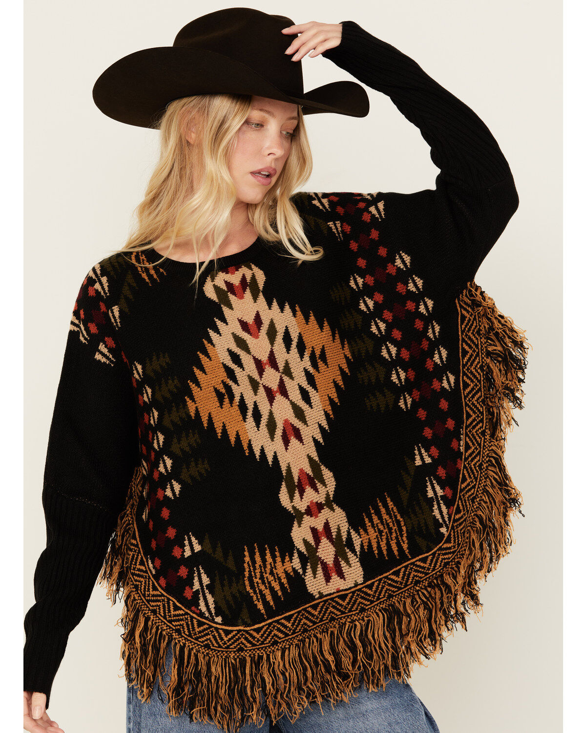Cotton & Rye Women's Southwestern Fringe Pancho Sweater