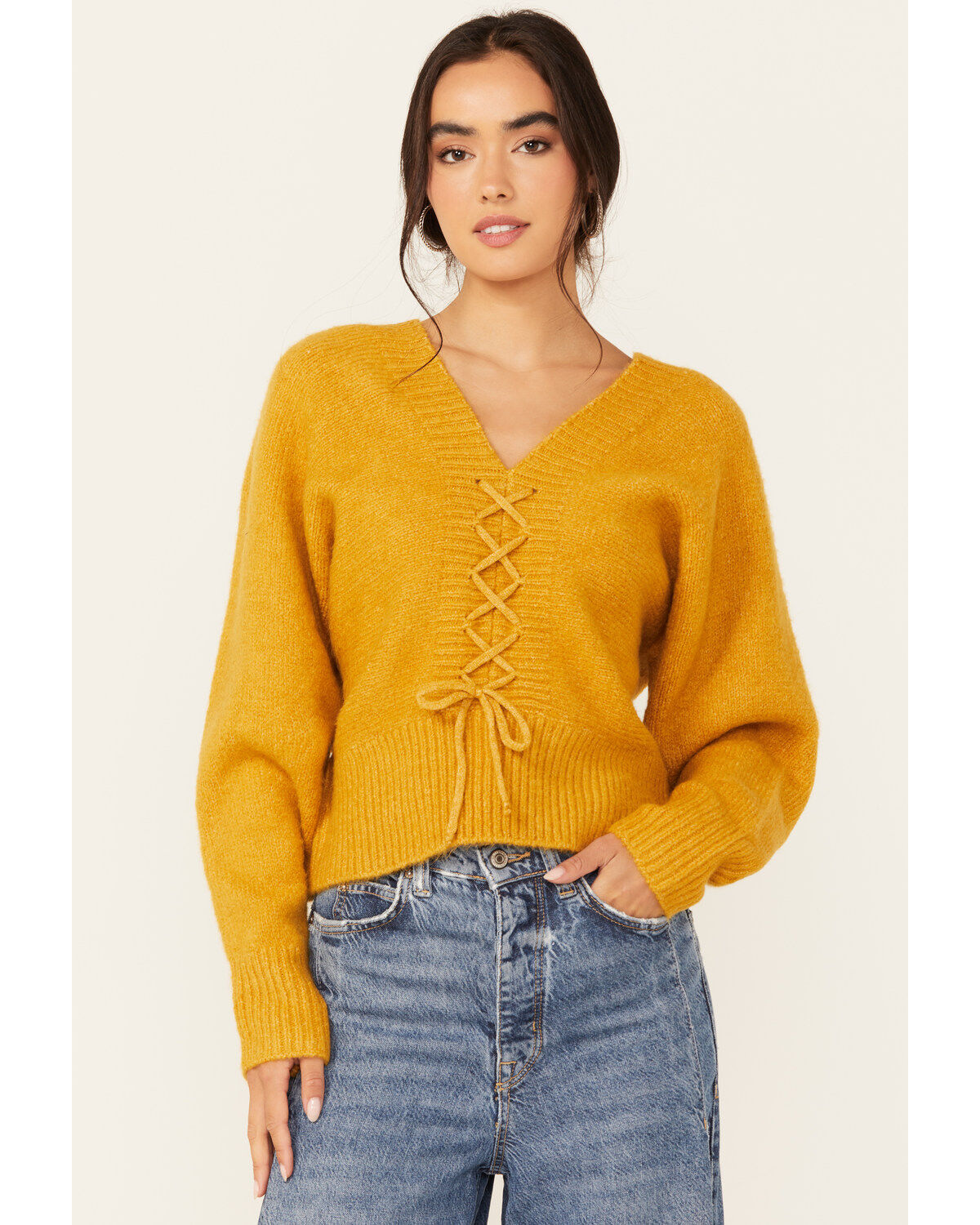 Molly Bracken Women's Long Sleeve Mock Lace-Up Sweater