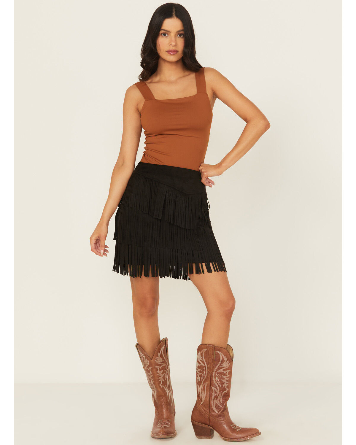 Fornia Women's Faux Suede Fringe Mini Skirt