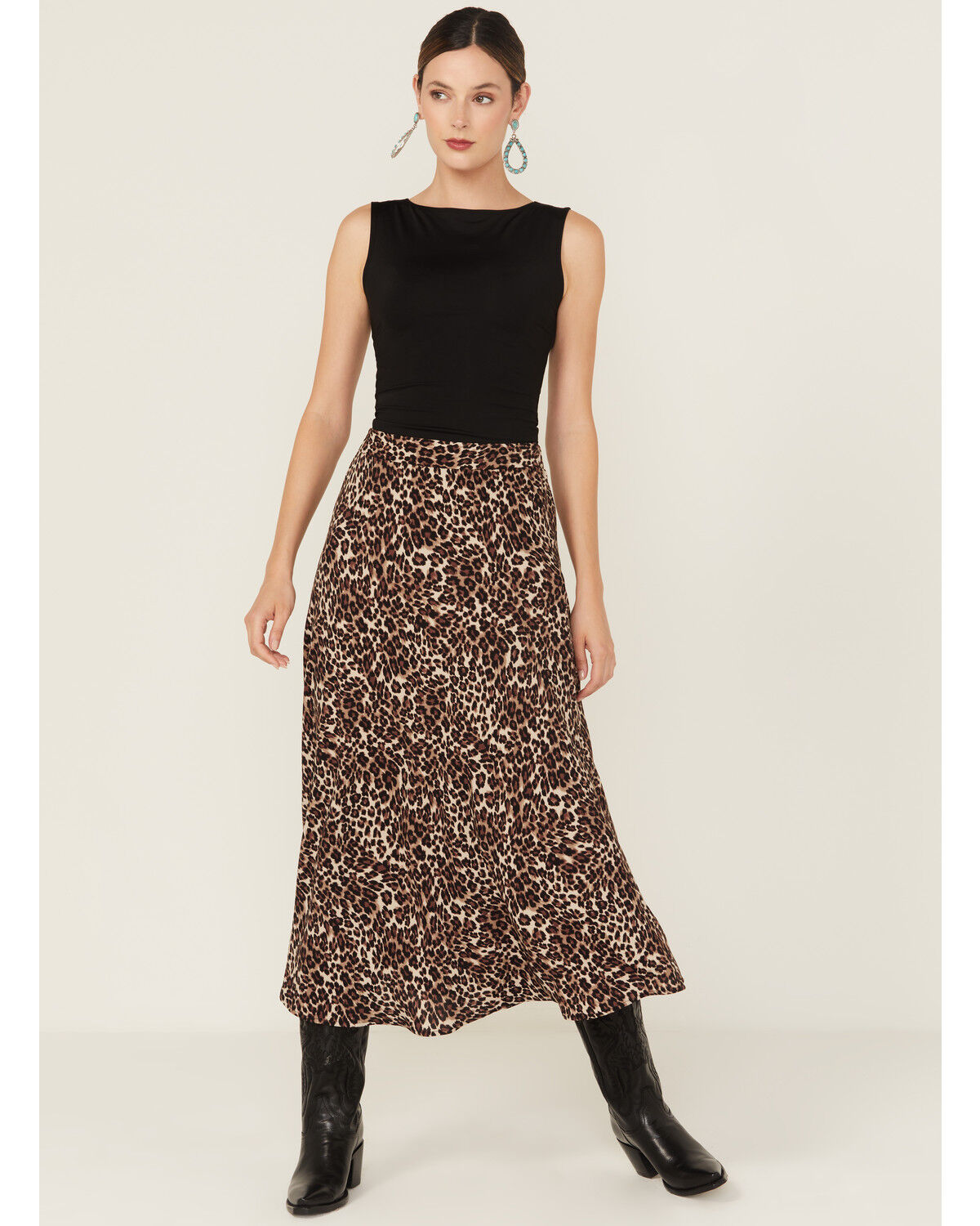Originality Women's Leopard Print Midi Skirt