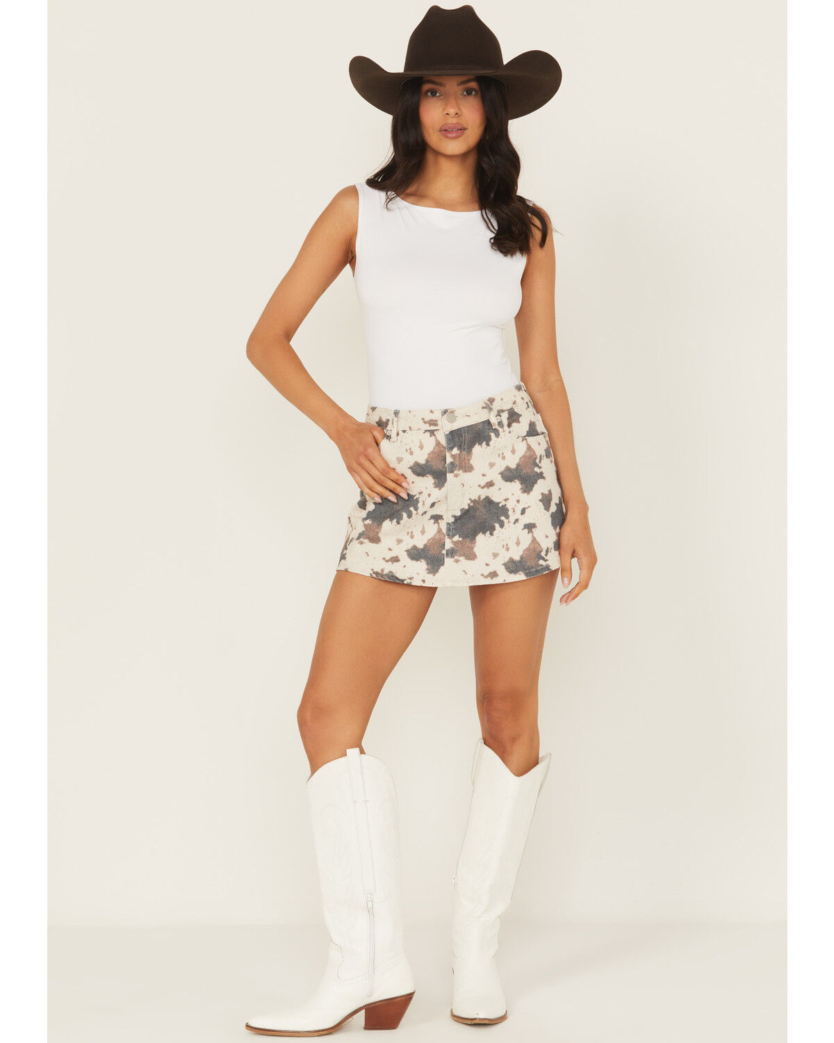 Rock & Roll Denim Women's Cow Print High Rise Tassel Mini Skirt