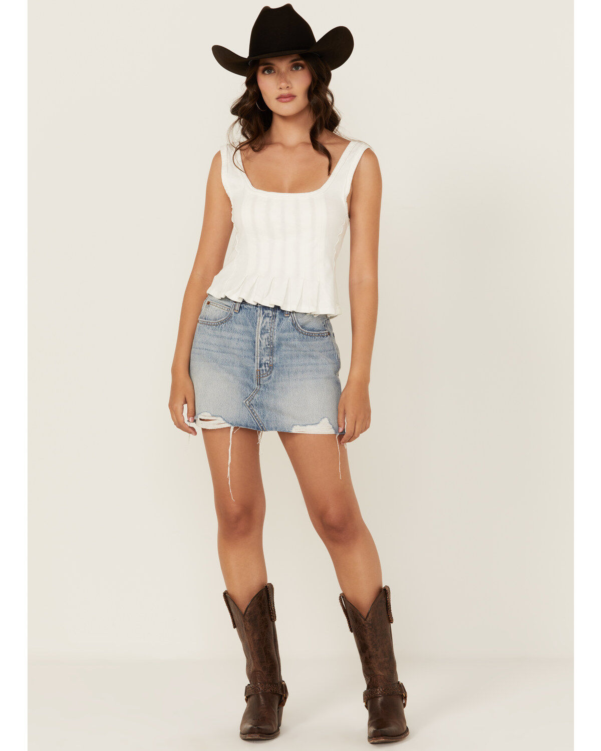 Free People Women's Daylight Medium Wash Denim Mini Skirt