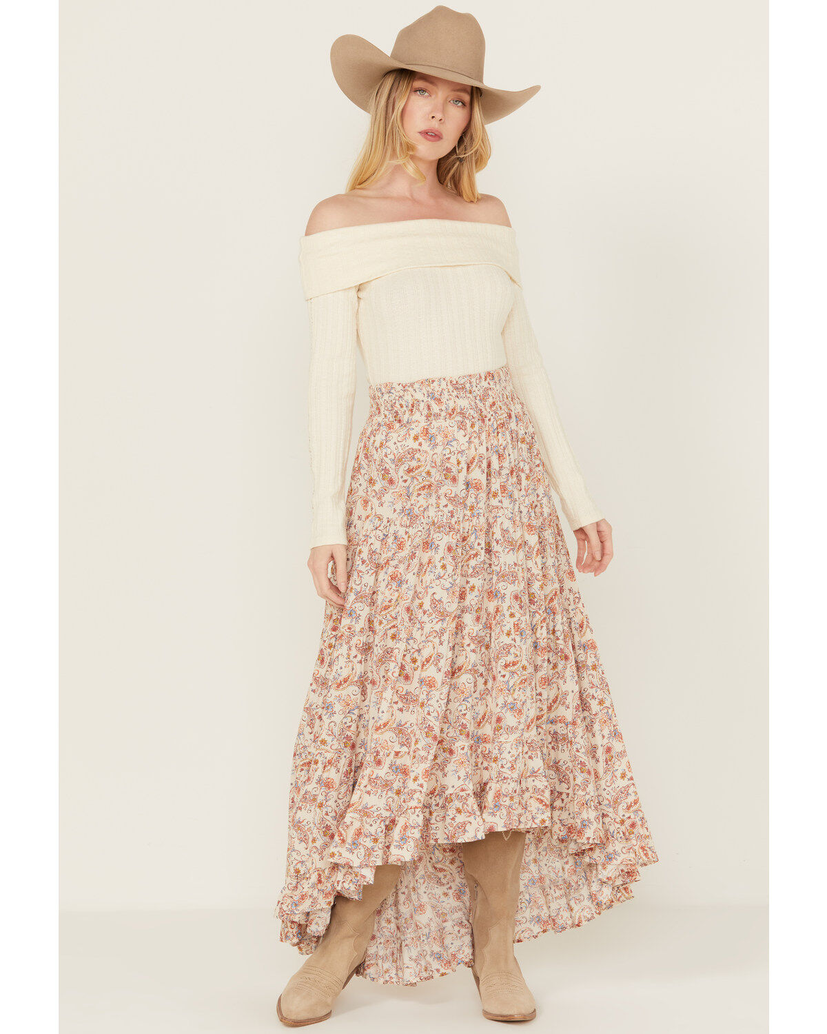 Wild Moss Women's Floral Print High-Low Midi Skirt