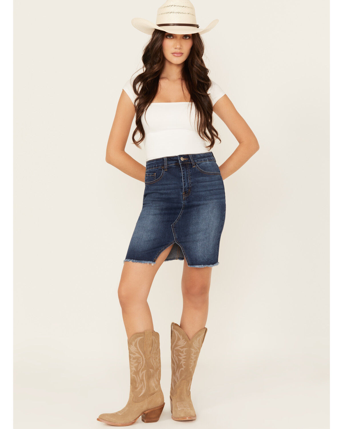 Vervet Women's Dark Wash Raw Hem Mini Skirt