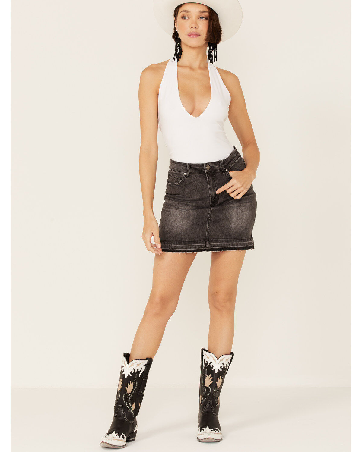 Wonderwest Women's Beaded Tassel Mini Skirt