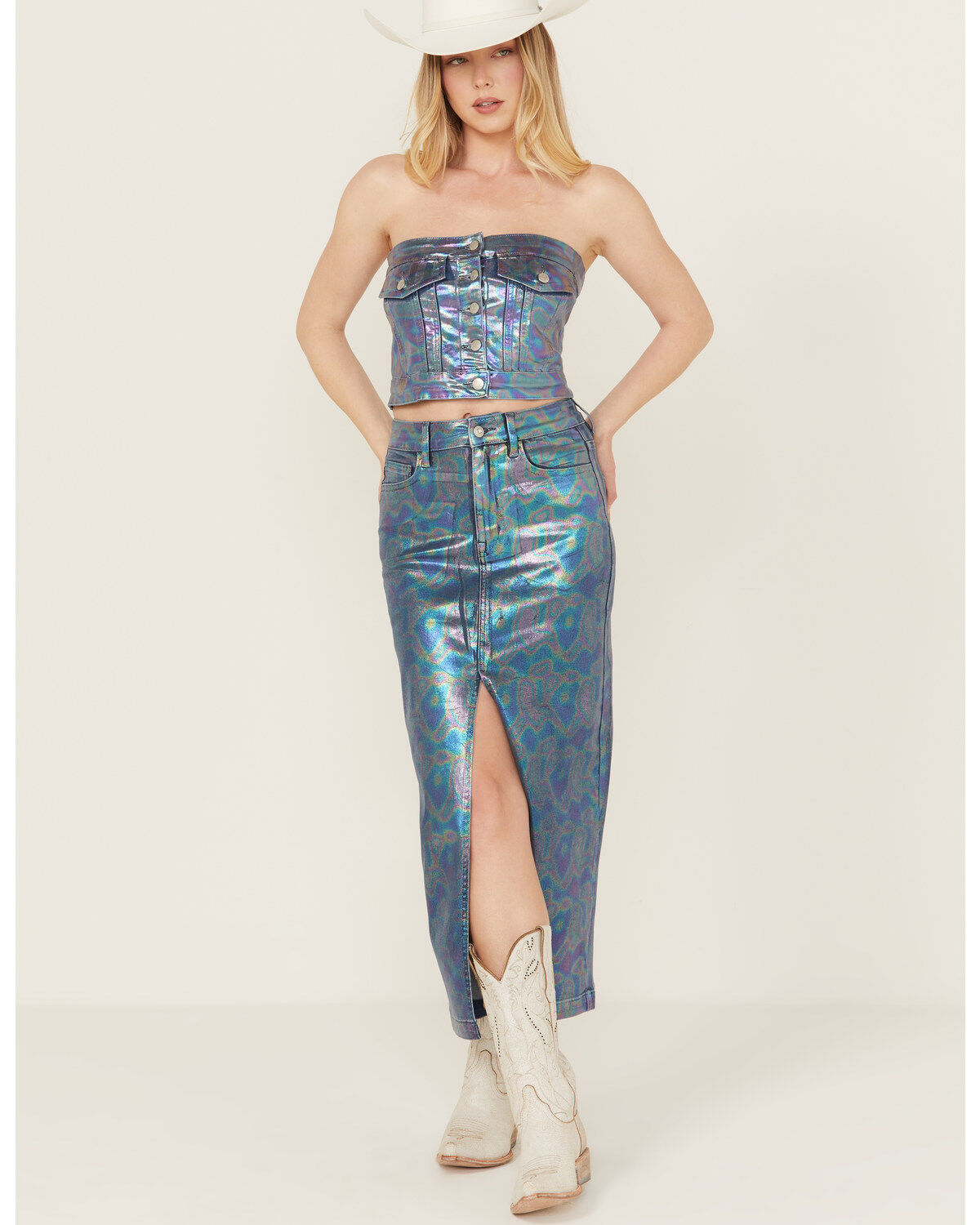 Vibrant Denim Women's Iridescent Maxi Skirt