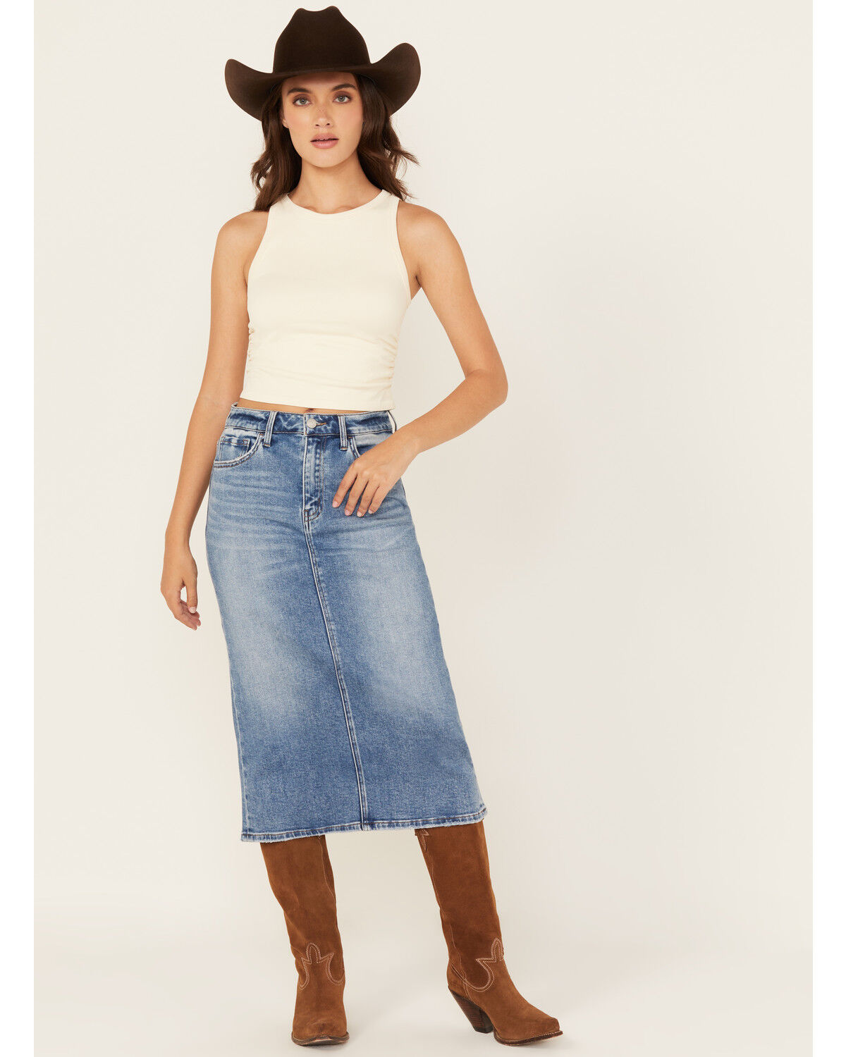 Stetson Women's Light Wash Denim Midi Skirt