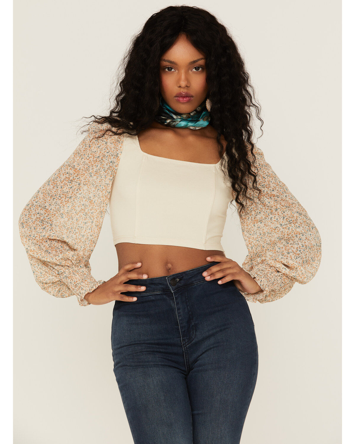 Lush Women's Long Sleeve Chiffon Floral Corset Top