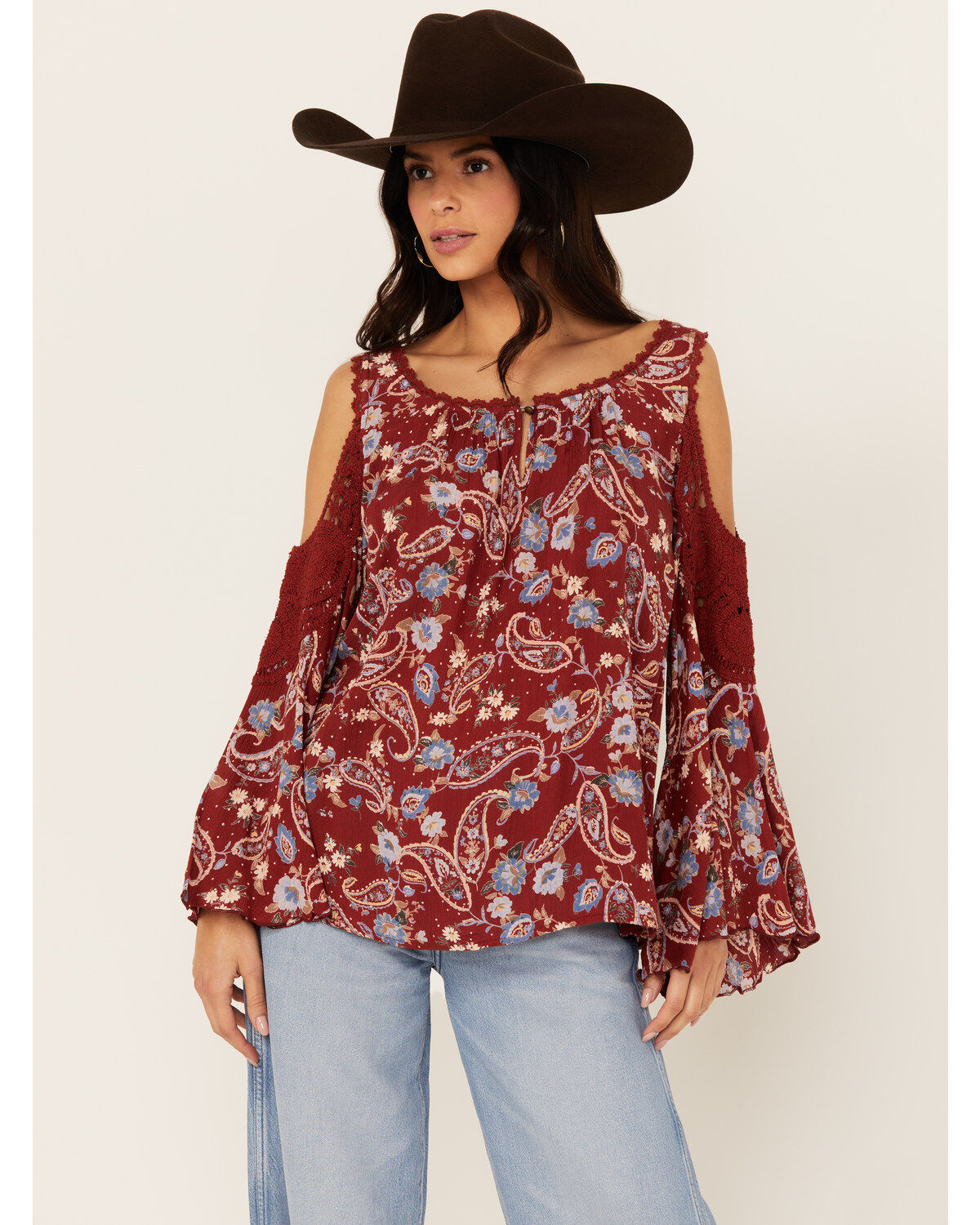 Bila Women's Floral Print Long Sleeve Cold Shoulder Shirt