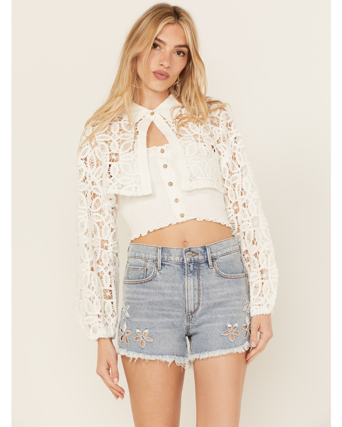 Miss Me Women's Lace Long Sleeve Button-Down Shirt