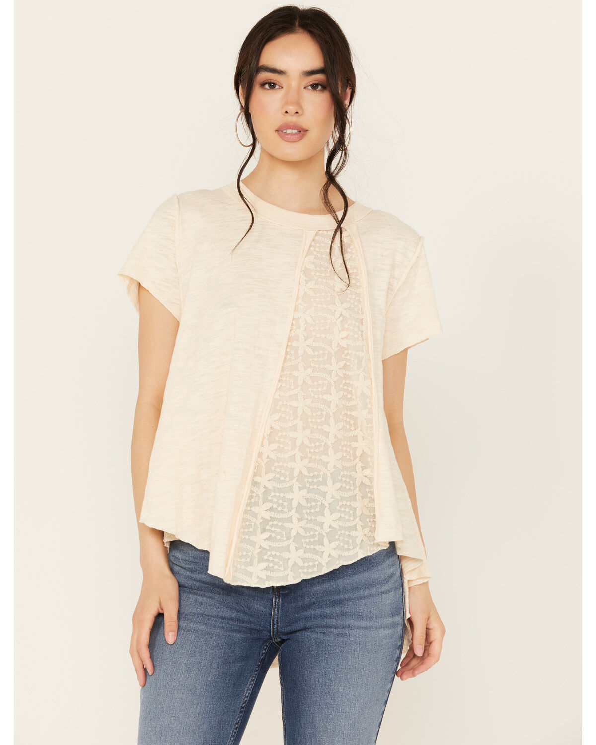 By Together Women's Lace Contrast Short Sleeve Knit Top