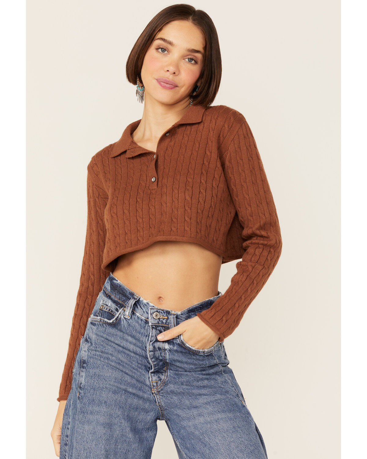 Callahan Women's Rootbeer Brown Cable Knit Long Sleeve Daisy Polo