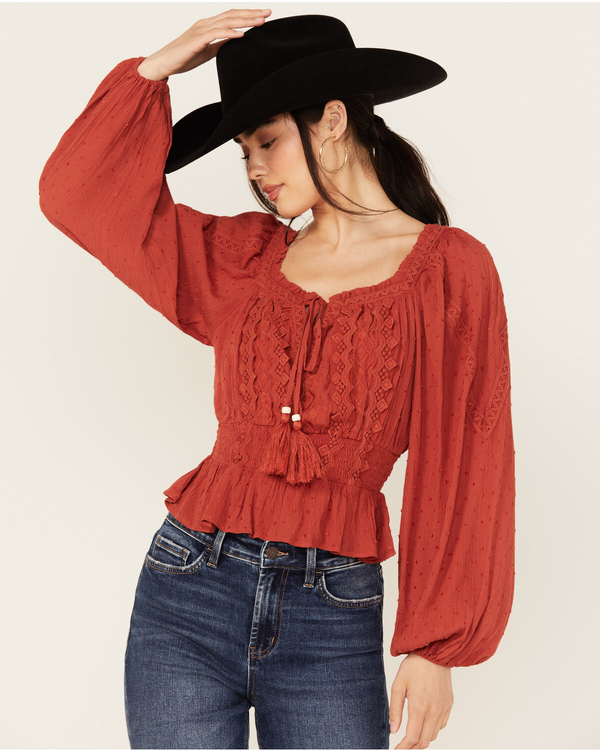 Miss Me Women's Embroidered Long Sleeve Peasant Top