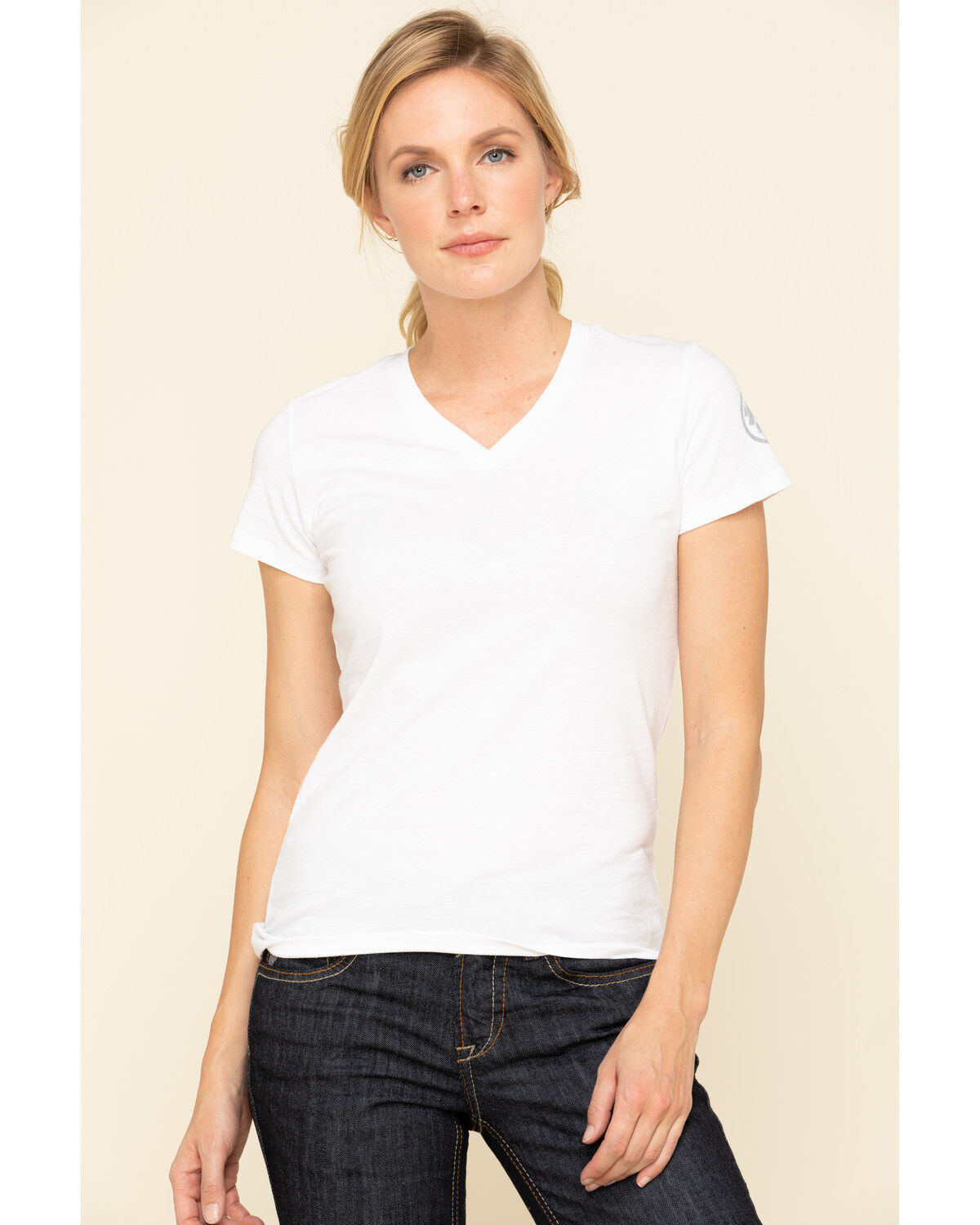 Dovetail Workwear Women's White Solid V-Neck Work Tee
