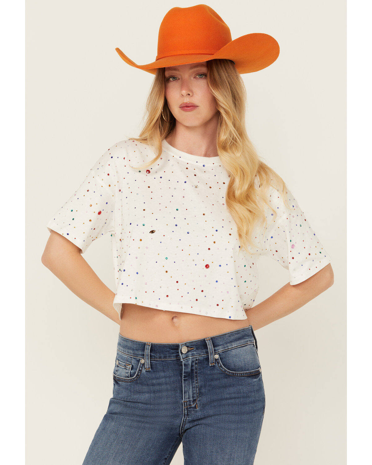 Blue B Women's Rhinestone Short Sleeve Cropped Tee