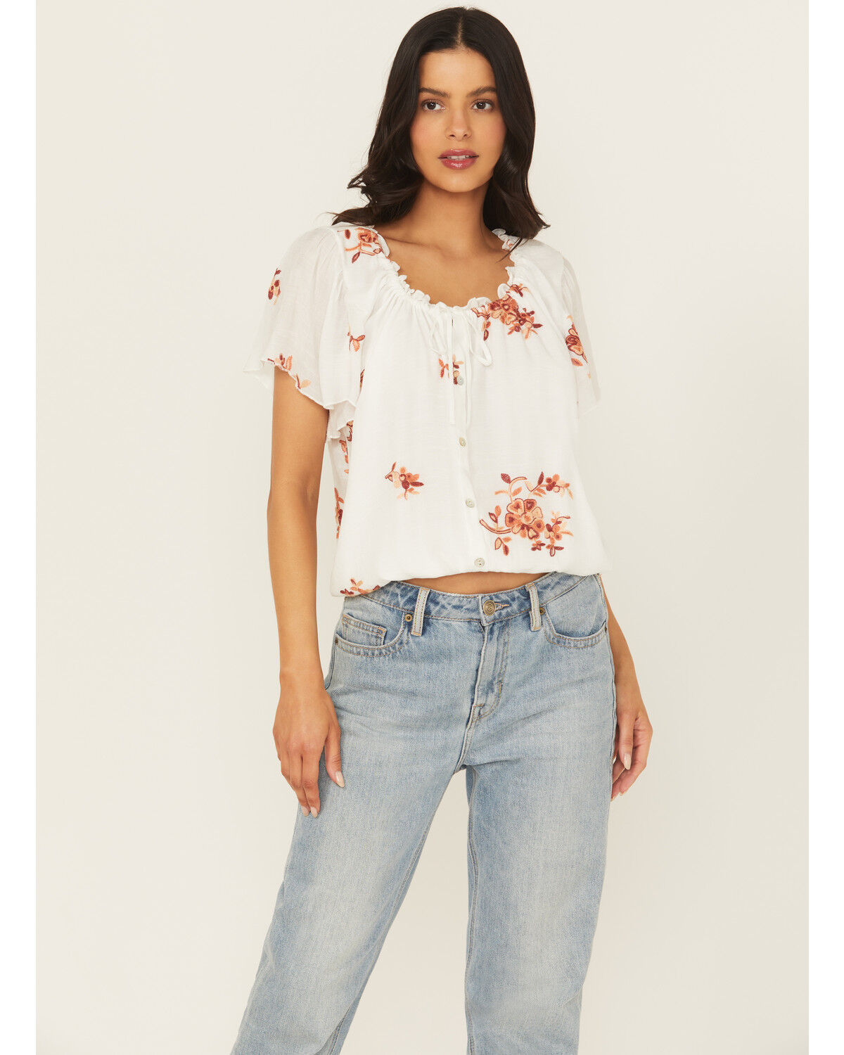 Wild Moss Women's Embroidered Tie-Front Top