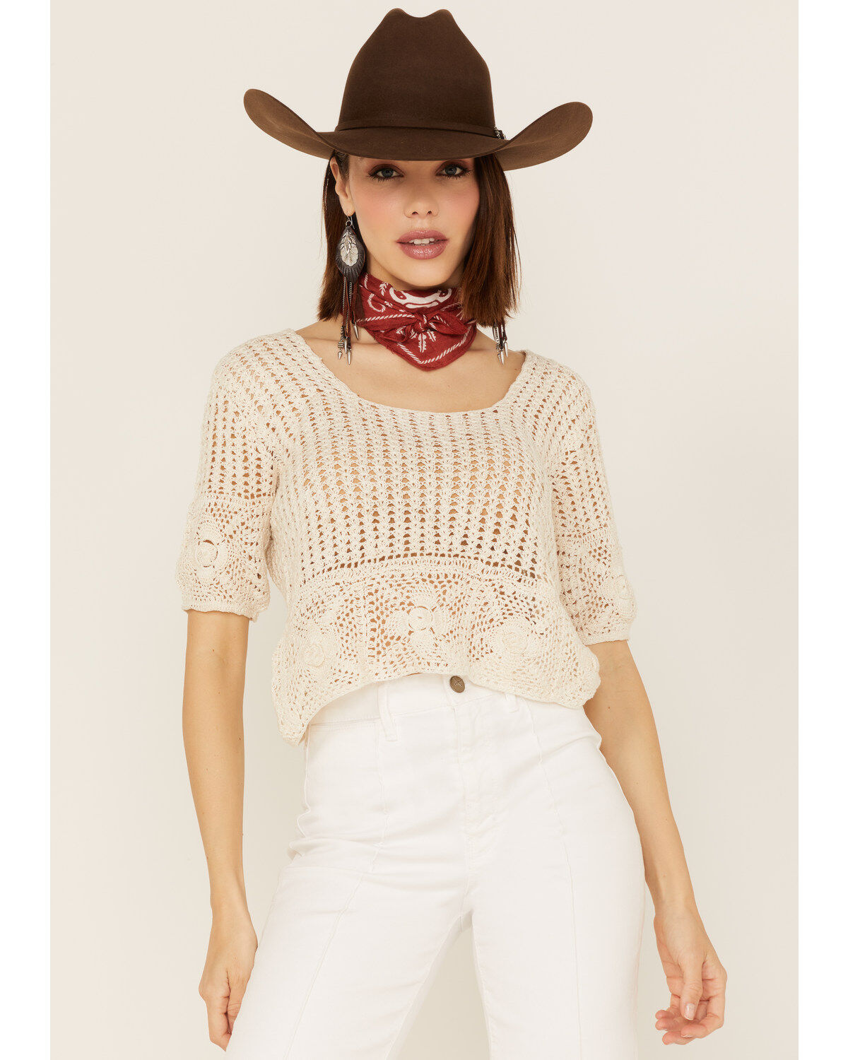 Sadie & Sage Women's Crochet Bestia Peplum Top