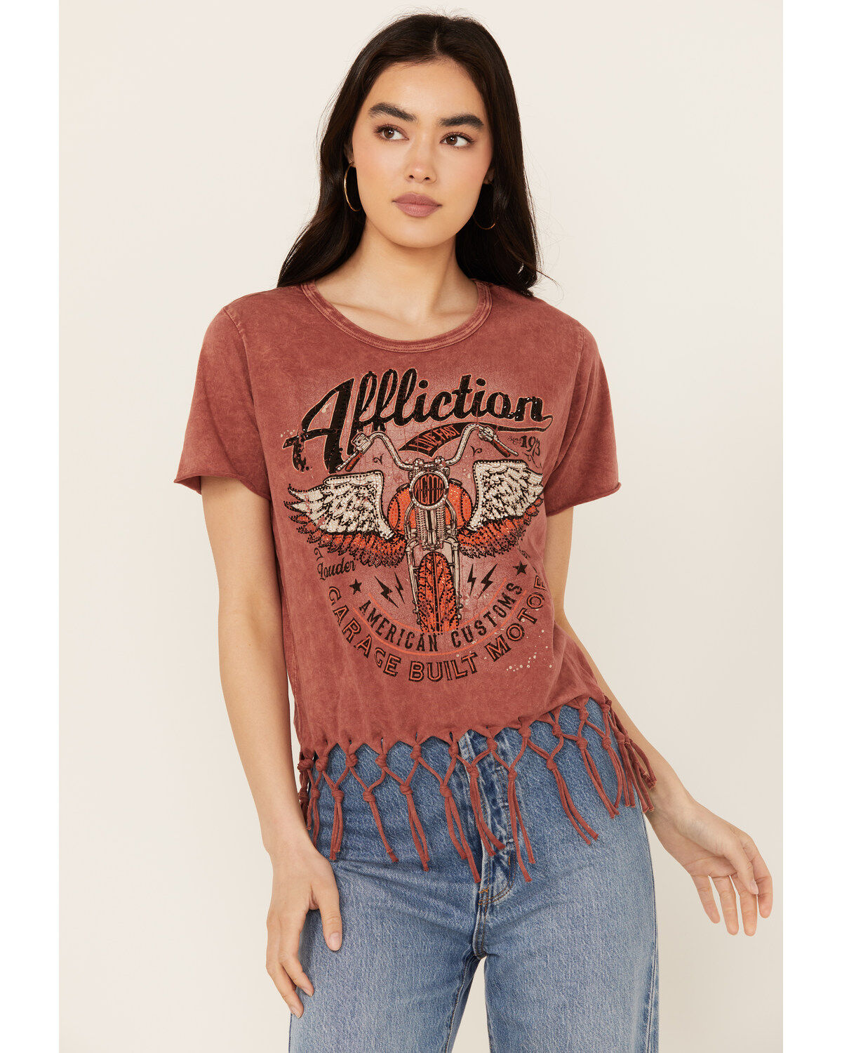 Affliction Women's Moto Fringe Short Sleeve Graphic Tee