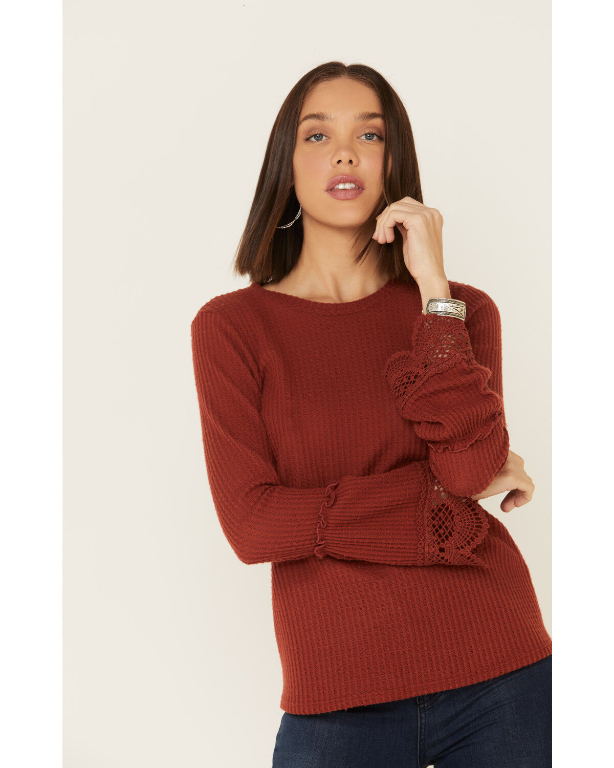 Moa Moa Women's Rust Brushed Thermal Bell Sleeve Top