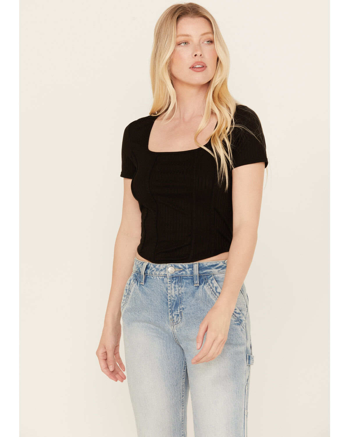 Moa Moa Women's Ribbed Corset Style Short Sleeve Top