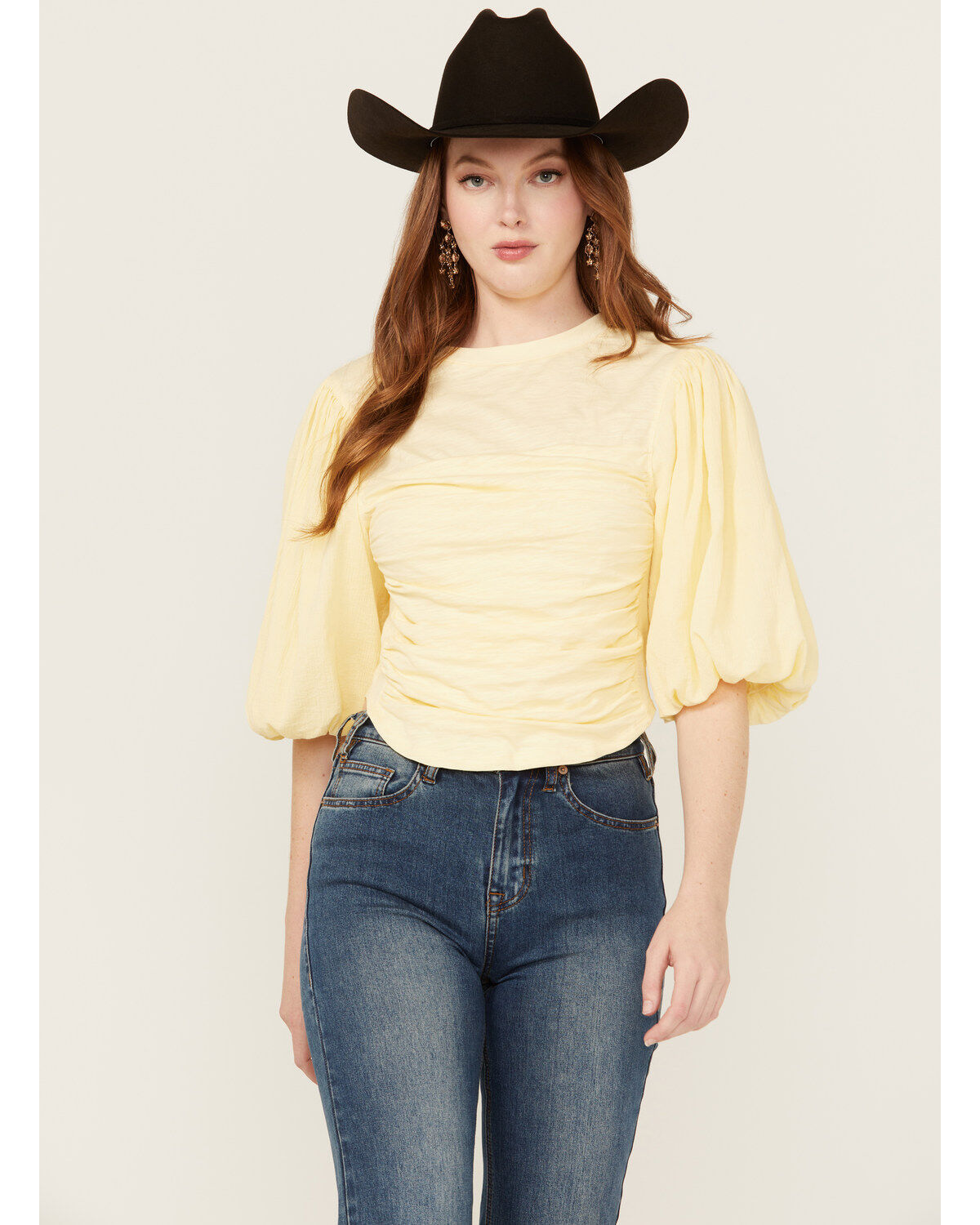 Beyond The Radar Women's Puff Sleeve Ruched Shirt