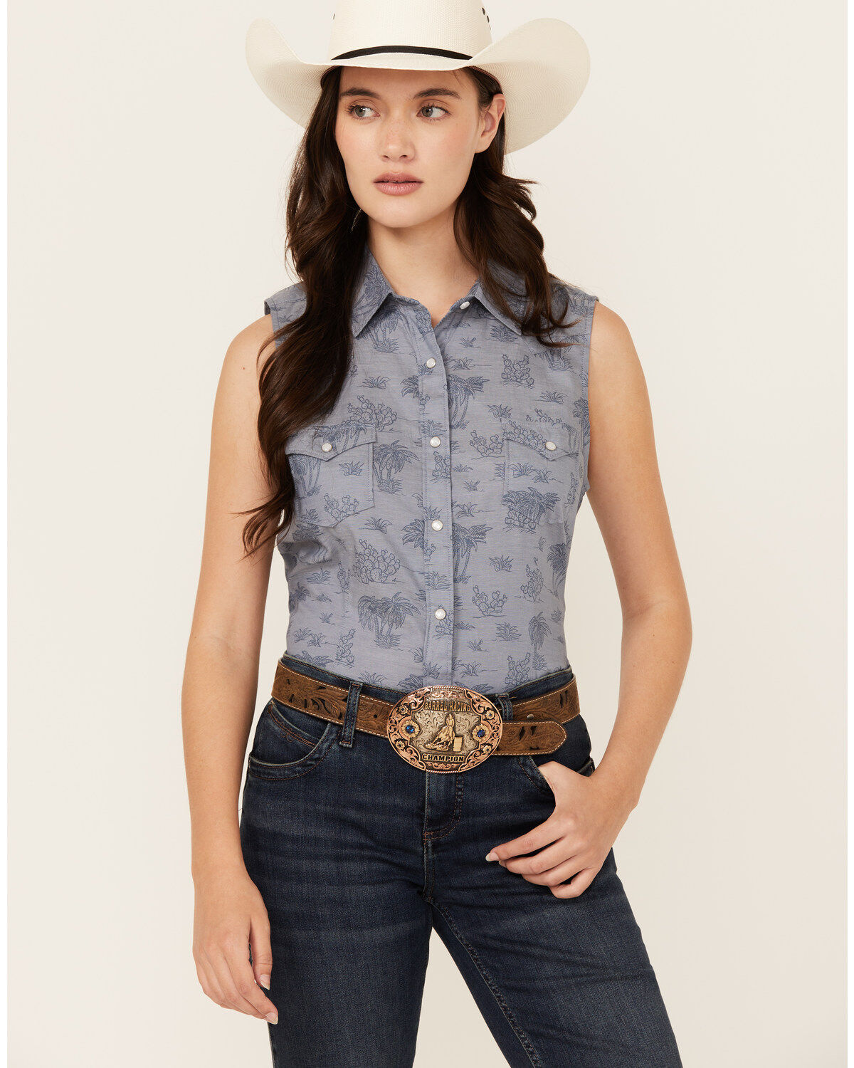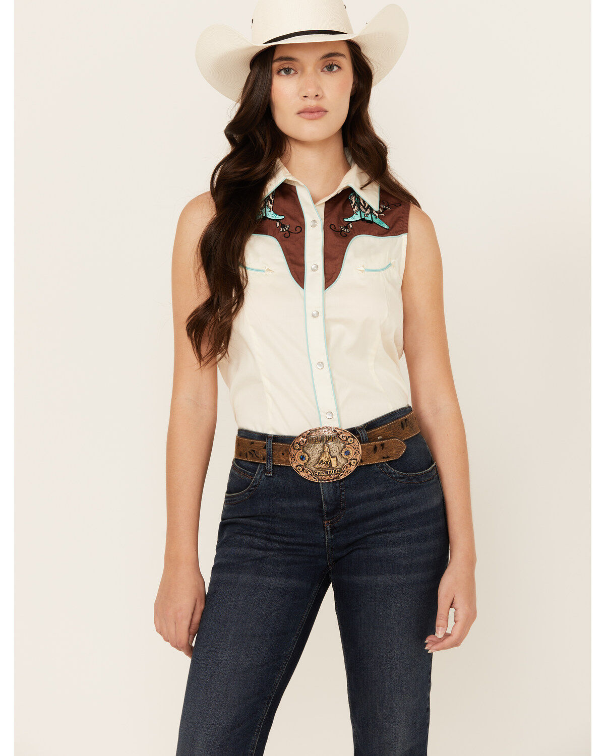 Panhandle Women's Retro Sleeveless Pearl Snap Western Shirt