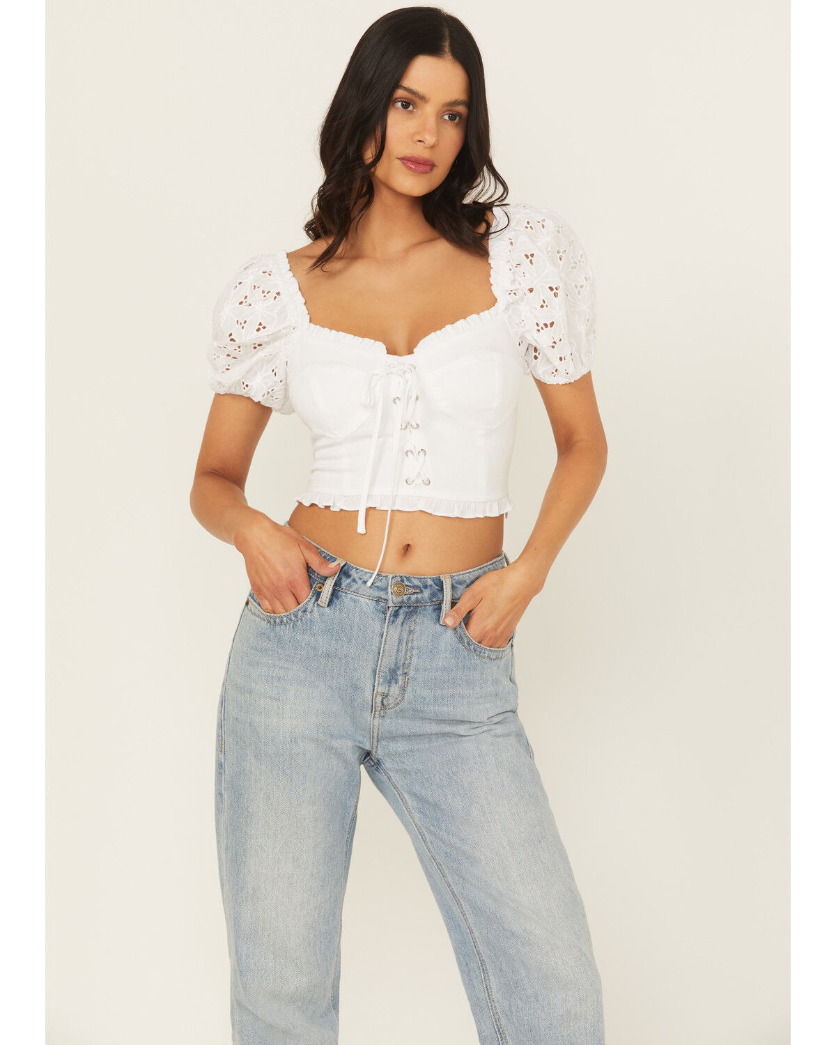 Miss Me Women's Eyelet Sleeve Bustier Top